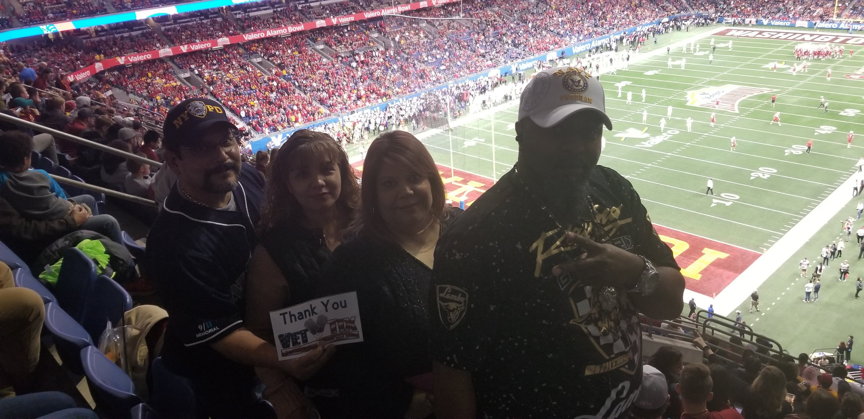 Thanks VETTIX, and Alamo Bowl for the tickets. It was an exciting game to take my family too and watch, We made great memories to cherish thanks to the donors. Happy New year.