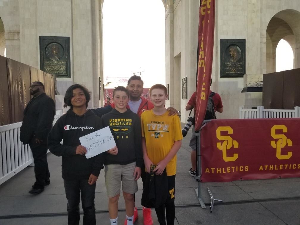 Thank you very much for the USC Football tickets. my daughter was able to enjoy the game with her friends, which is something we would not be able to afford to do without the genericity of VETTIX donors.
