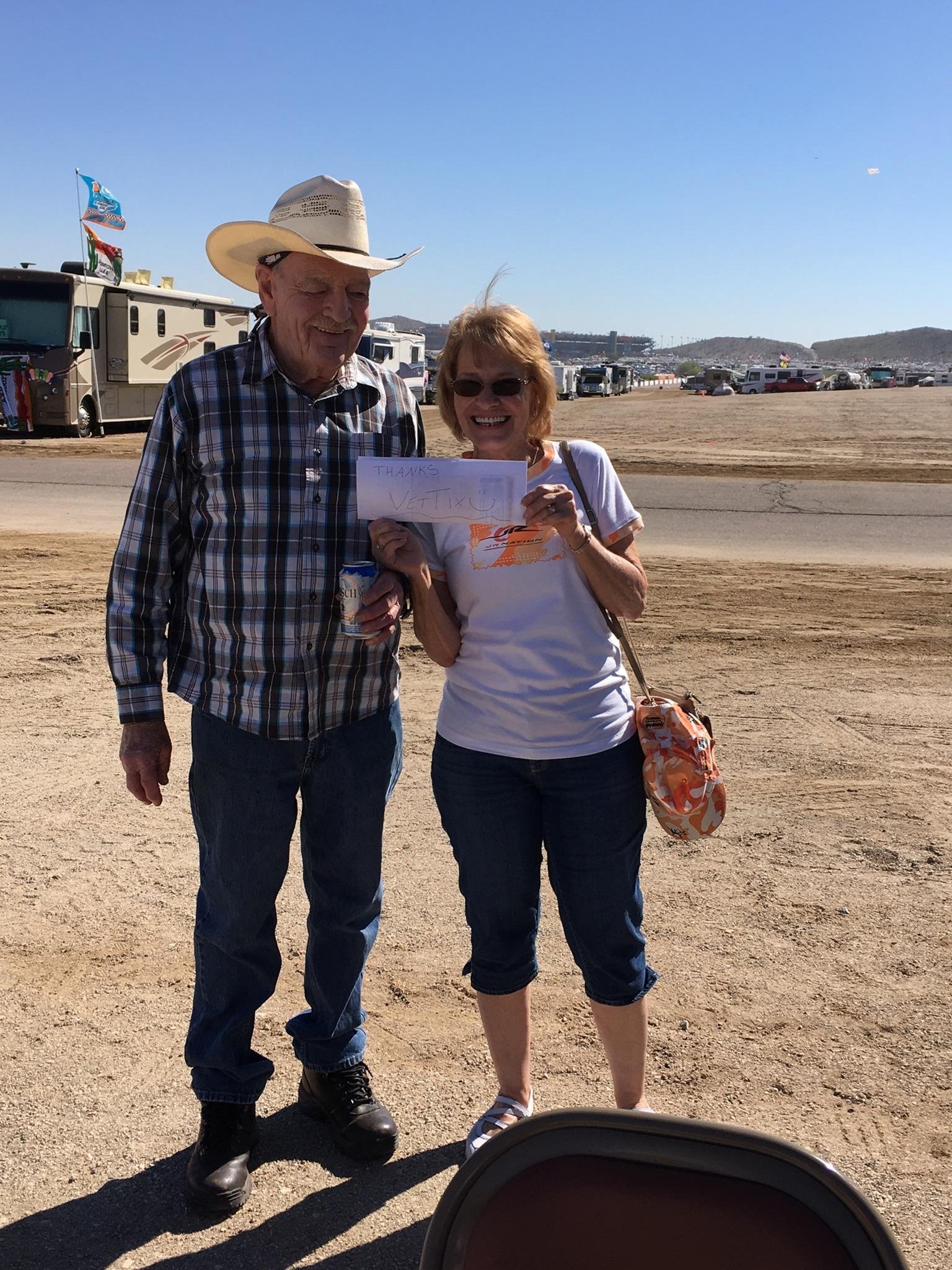 I want to thank Vet Tix and the people who donated these tickets. I would not have been able to take my brother and our wives to this event. First time to Nascar, THANK YOU SO MUCH FOR THE MEMORIES ! We had the best time, hearing the sound of freedom when the jets did their flyby during the National Anthem was awesome !!! Thanks again !