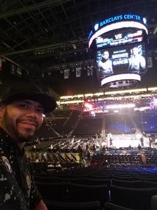 I went to this event with four of my good Vet friends. We had a blast and the seats where incredible. We got a chance to see the fight from a wonderful point of view and enjoyed the the friendly people sitting all around us. It was definitely a fight and night to remember! Thank you Barclays Center & Brooklyn Sports & Entertainment for the great experience!!!