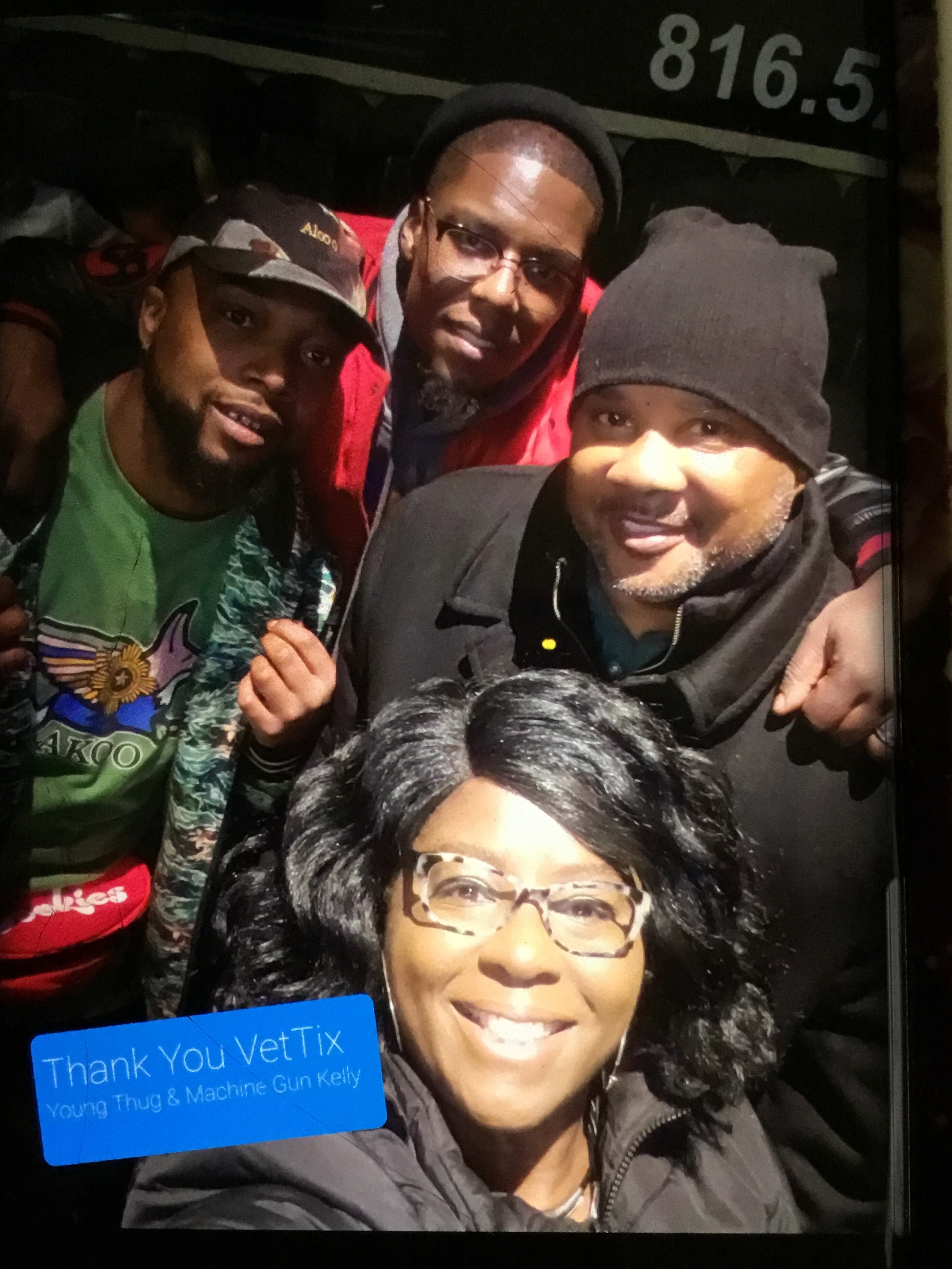 I would like to thank "The Family Arena" organization for donating tickets to see Young Thug and Machine Gun Kelly. I was awarded 4 tickets, enough to take my daughter and 2 of her friends. She doesn't get out much since she is a single-mom with 3 young daughters, not much money for entertainment. I didn't want to go alone to the concert, so it was a bonus for me to enjoy the entertainment with my daughter. So, again thank you Family Arena and VetTix for supporting the Active Duty and Veterans.