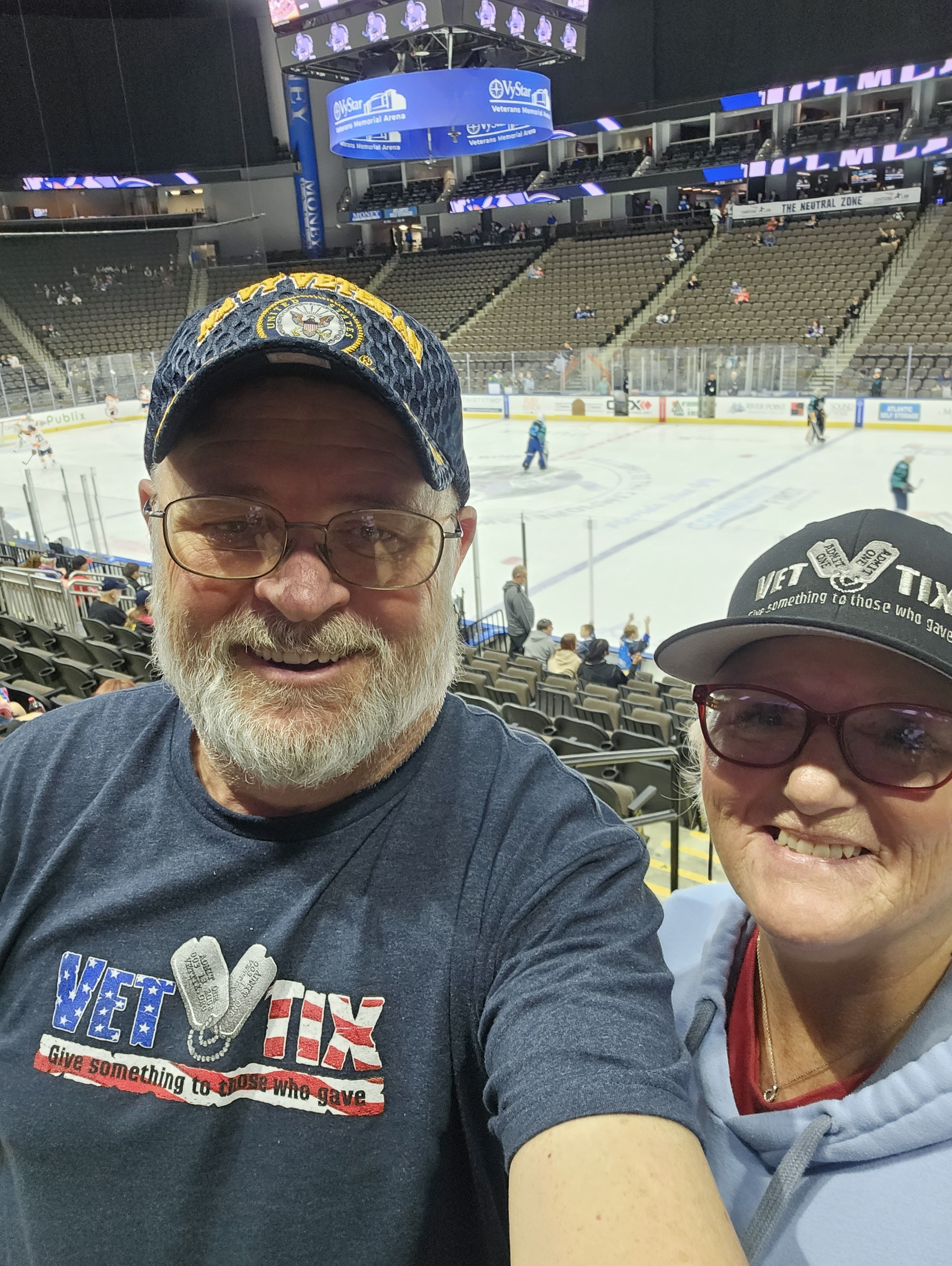 Thank you so much Jax Icemen and Vettix for the wonderful night at VyStar Veterans Memorial Arena. We saw a fun game and got to see fellow vets and hockey fans in a great atmosphere. We are so appreciative for the tickets and support!