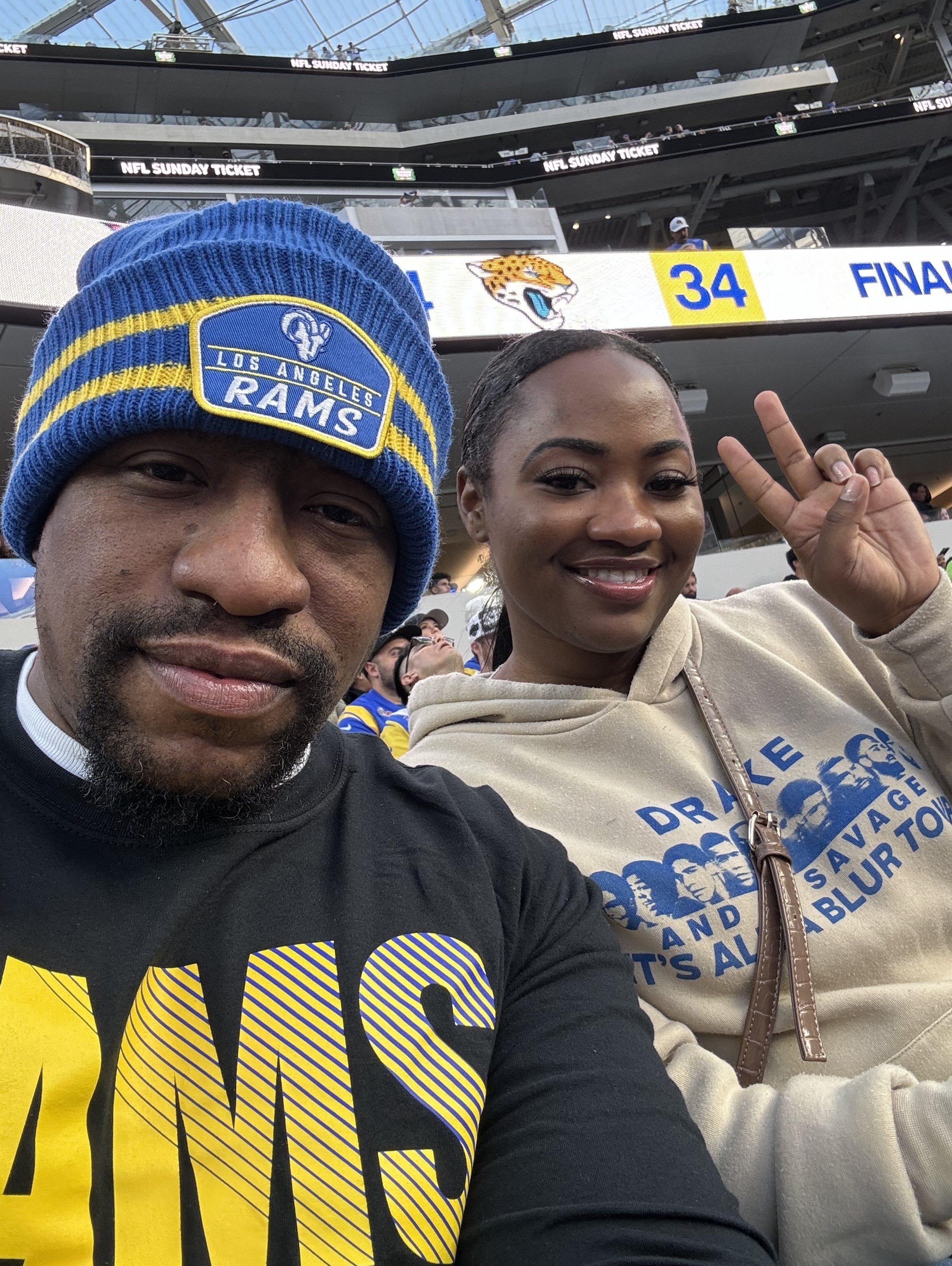 To: Clint N, Angeline S, Ramon R, John P, Blayne Y, Phillip P, Patrick R, Belinda r L, Daniel V, George A, Scott K, Tiffany T, Alvin L, Hannah H, Nicolette L, Lisa F, Nicole M, Jack C, Kevin D, Jamie M, Edward M, John L, William D, Tim A Thank you for the chance to watch the Rams at SoFi Stadium. It was awesome seeing the Rams defeat the Seahawks live at the game!