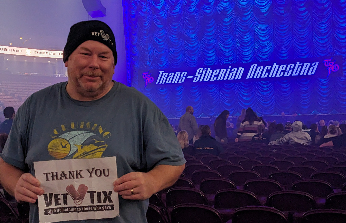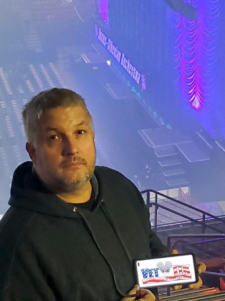 I want to thank Trans-Siberian Orchestra and Vettix.org for the tickets to spend some family time with my daughter at this concert. We truly enjoyed the concert and the generous donation to this disabled veteran. Memories were made and relationship was strengthened with my teenage daughter. My daughter is a little (ok a lot) camera shy, so it is just me in the picture. My service dog, Duchess, watched and enjoyed the concert as well. I have pictures of her watching the concert, if you would like to see them. Contact me at tweetybirdcam7@yahoo.com and I will send them. I can't attach but one photo here. Thank you for all you do!