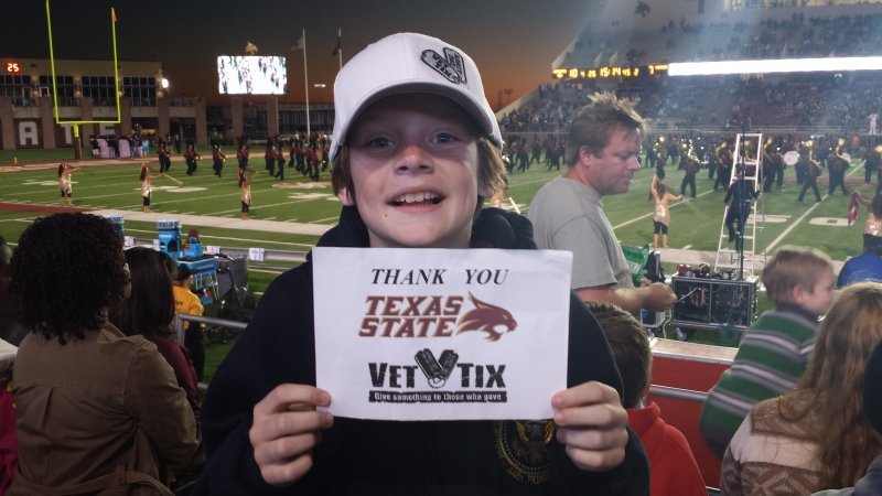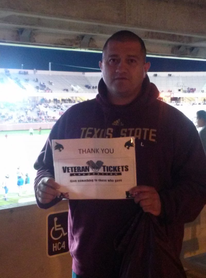 Thanks to the donors of Texas State football game tickets. Also, a big thank you to Veterans Tickets Foundation. I really enjoyed the game. We Won!