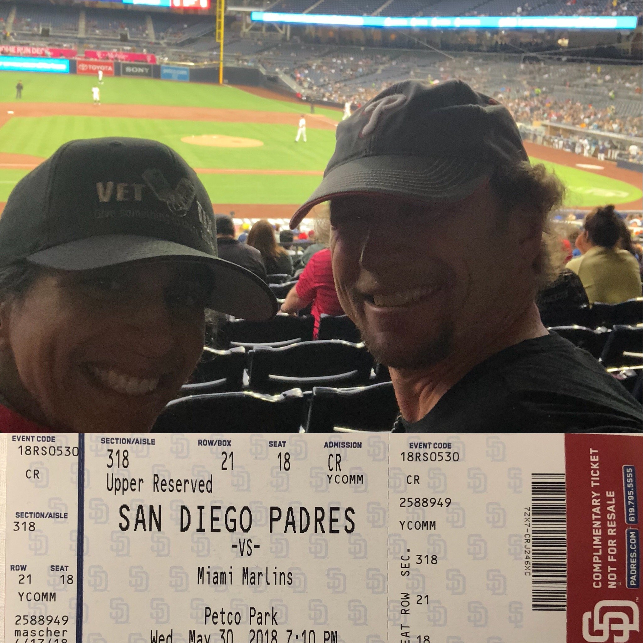 Thank you to my San Diego Padres and Vet Tix for the donated tickets. We had an awesome time and added bonus the Padres beat the Marlins. Once again thanks a bunch.
