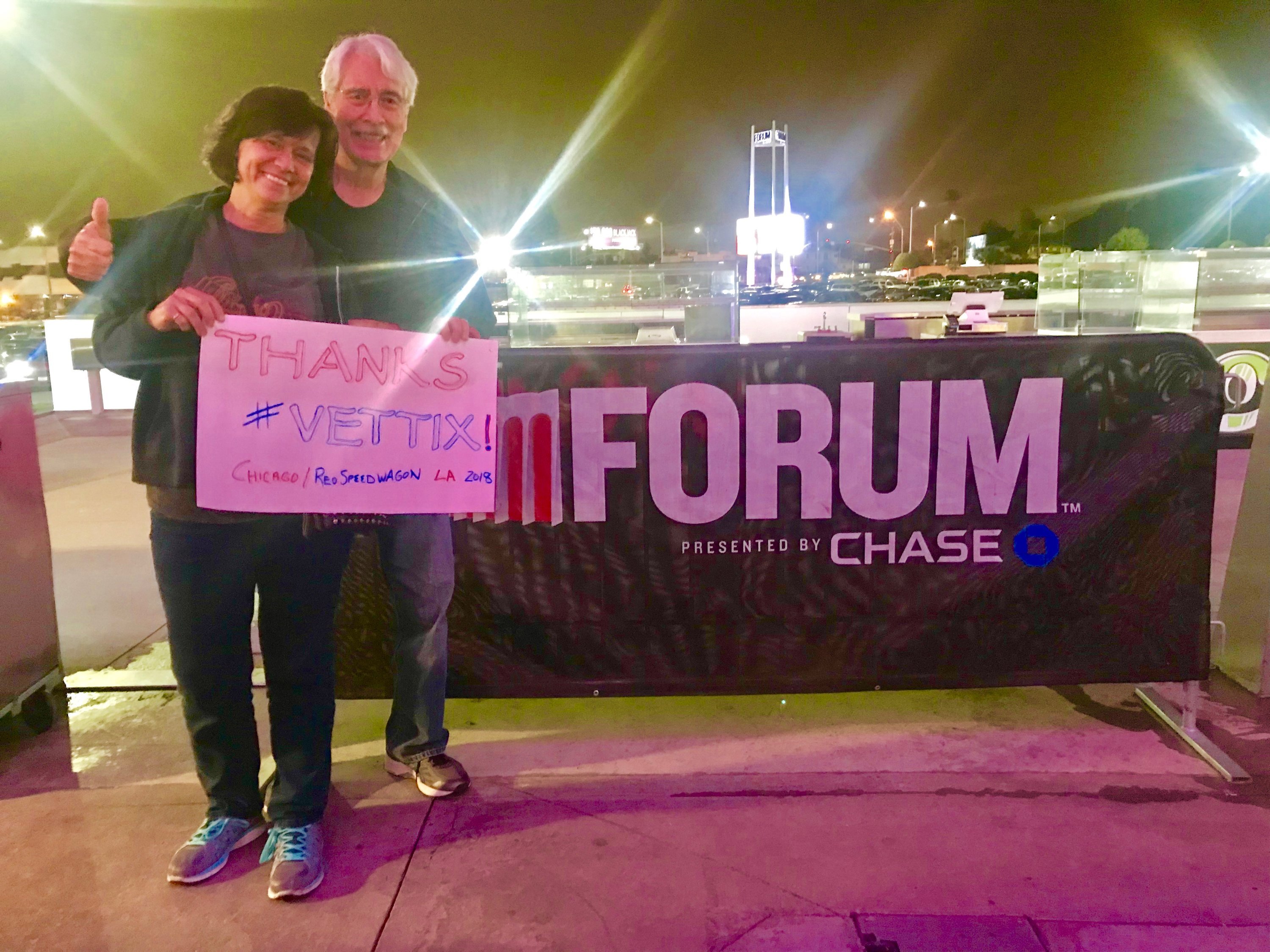 Live Nation and VetTix, thank you for the opportunity to attend the ReoSpeedwagon and Chicago concert at the Forum. Awesome!