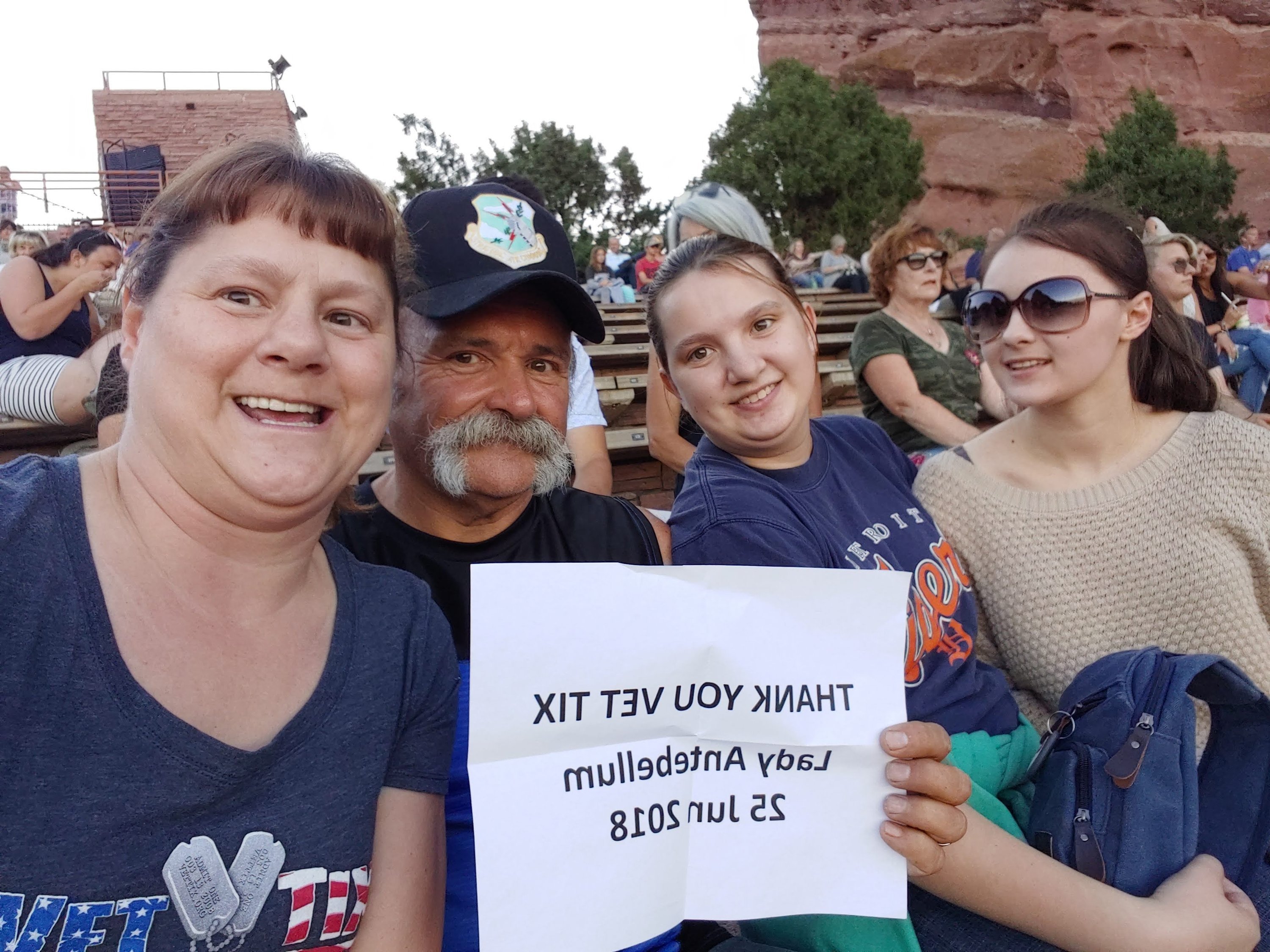 This is the first time I ever used VetTix and it was a great experience. I always wanted to show my wife, Red Rocks Amphitheater and she loved it. Great to see Lady A in person (another first for me)! Thanks so much for making this all possible!