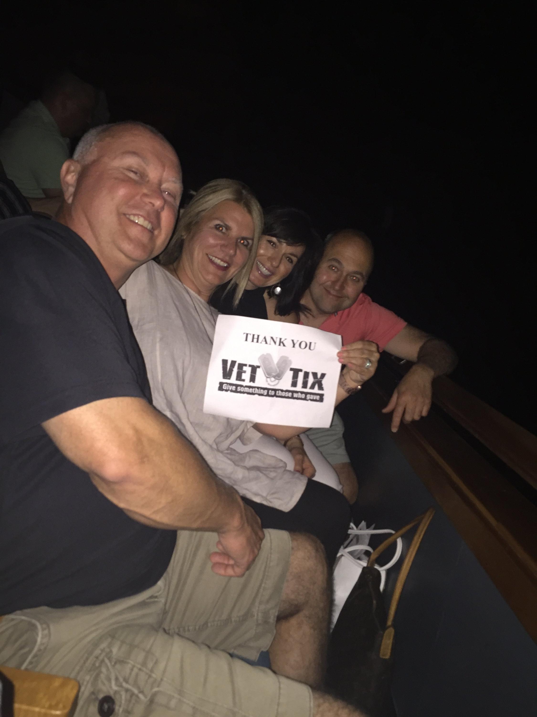 Thank you to Live Nation, and Vet Tix for a great event! We had a great opportunity to meet other Vets, and their families in our seating section. Thank you once again.