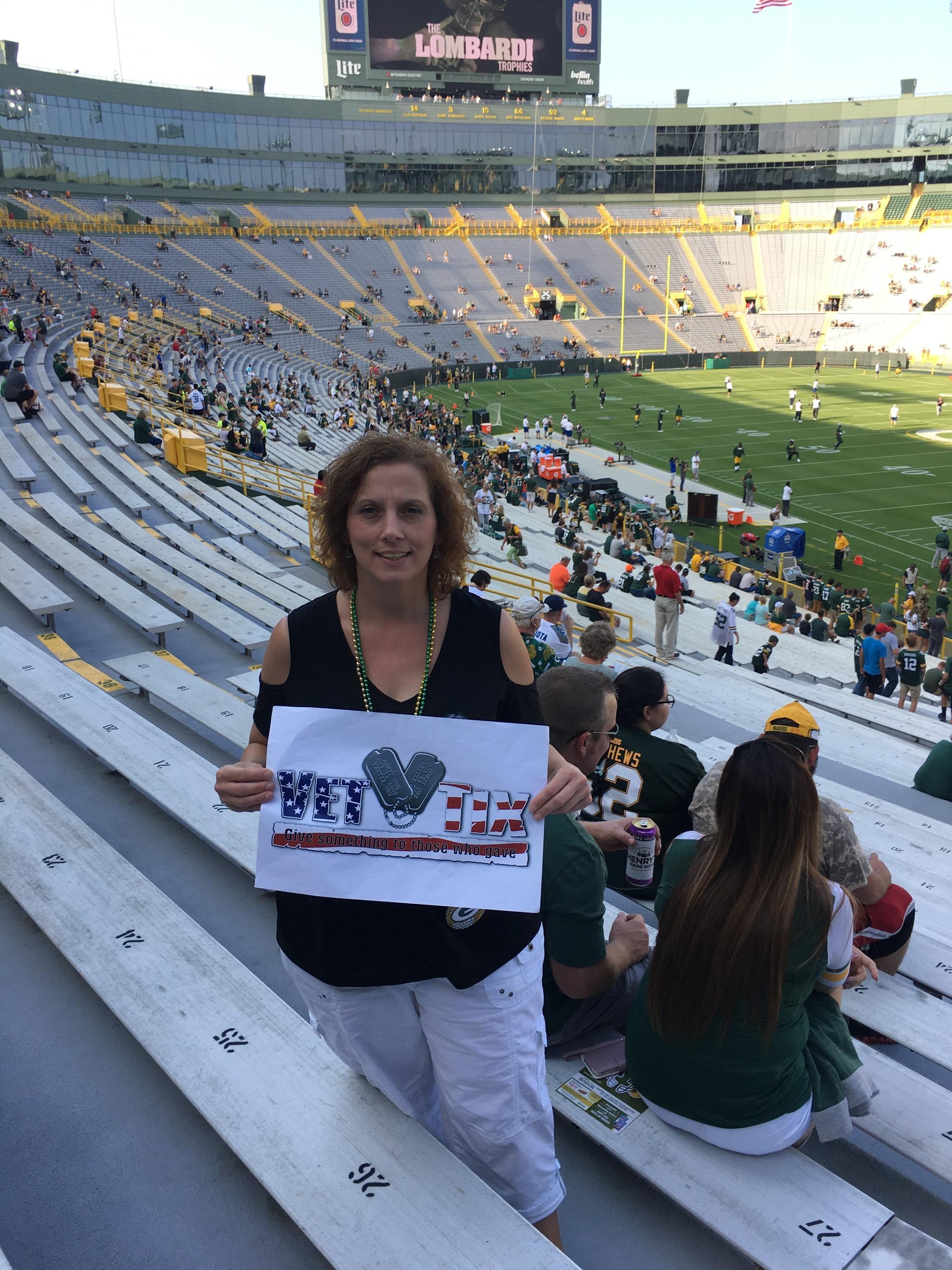 Thank you for your support in helping me attain this tickets. This was my first time to the Green Bay Packers stadium. It was a great time and I will be attending more games in the future. Your support for our military is very appreciated!!!!! Our military forces don't always get the recognition they deserve, but you are helping our armed forces feel the love that they deserve!!! Jason Whitmore SFC, US Army Retired