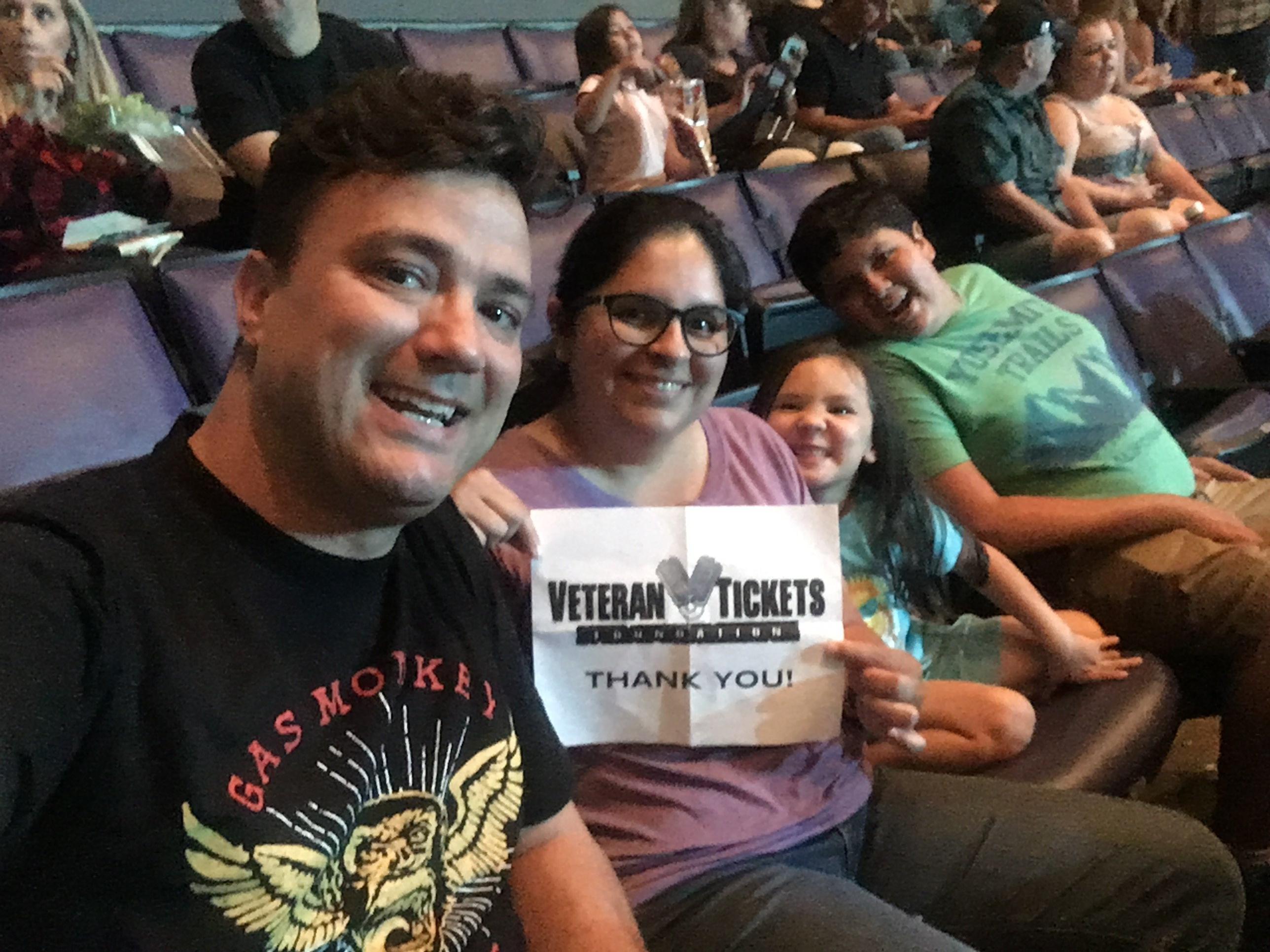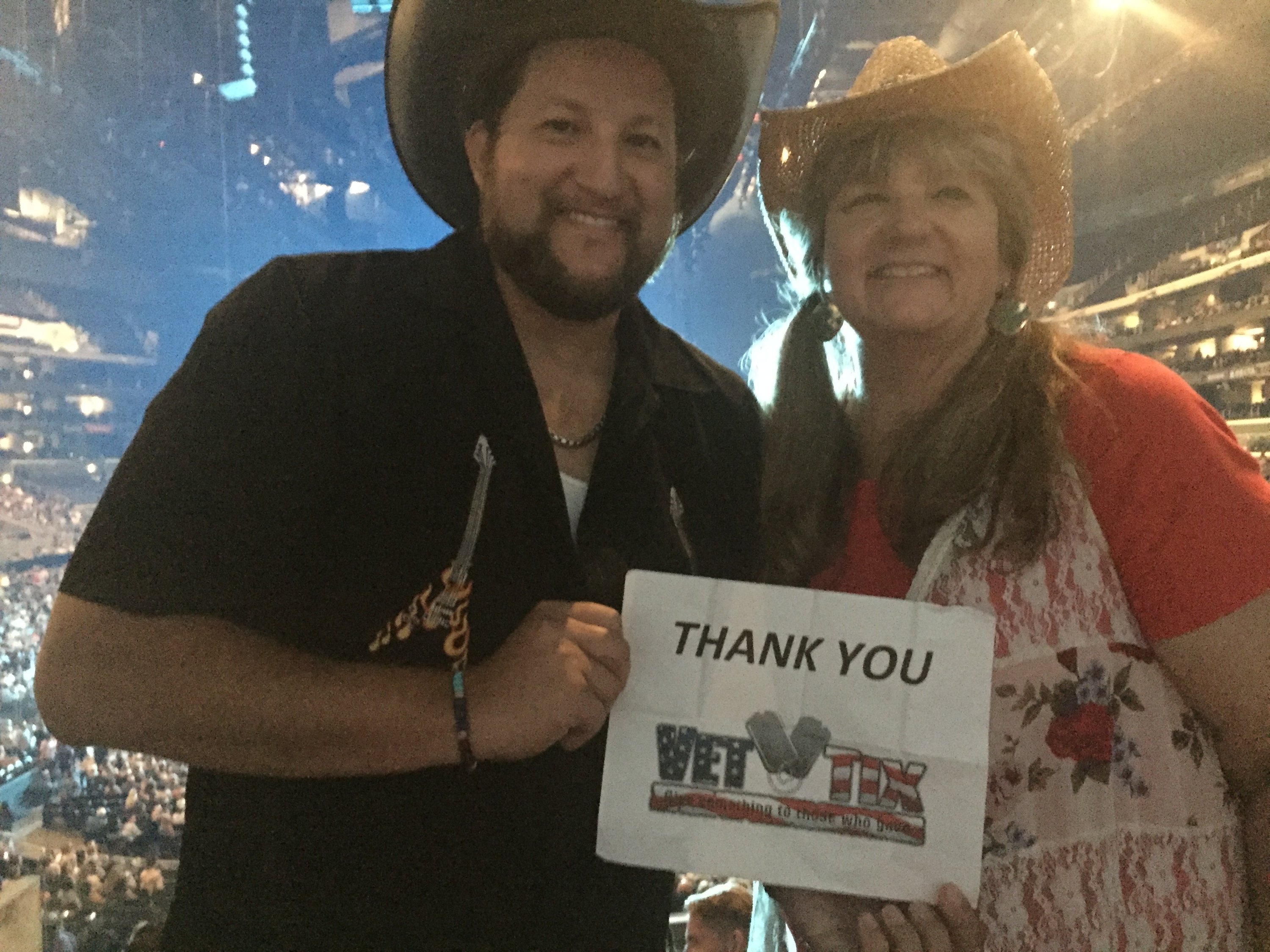 I'd like to say thank you to the donors of the Soul2Soul tour with Tim Mcgraw and Faith Hill. Because of this, my mom and I were able to get out of the house for a truly enjoyable evening! It was fantastic, we ate Chinese food, got to talk to some fellow veterans, and of course saw a wonderful show! Thank you so much. Warmly, Eric B. Lopez