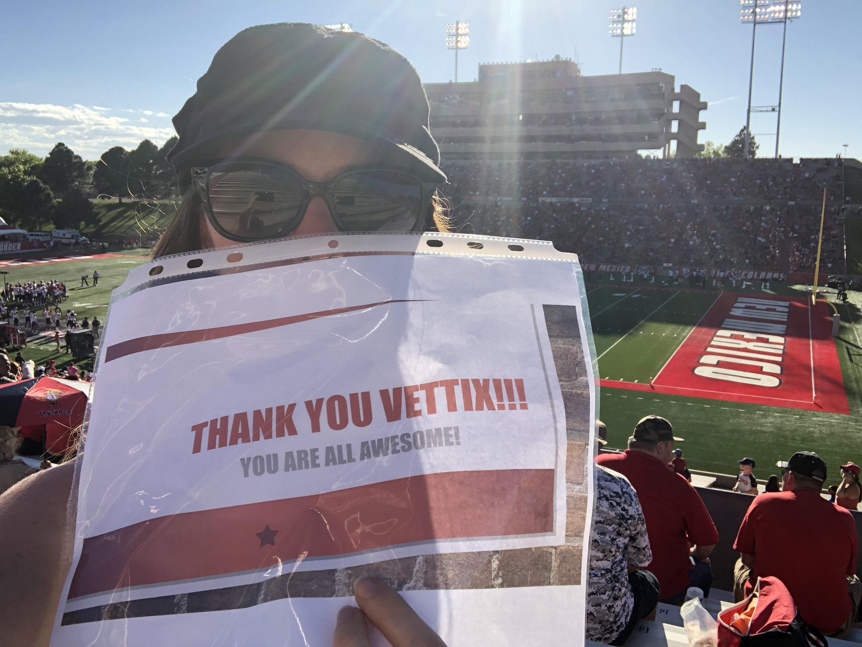 Thank you, University of New Mexico Lobos and Vettix for some great tickets! Even though we lost it still was exciting! Go Lobos!