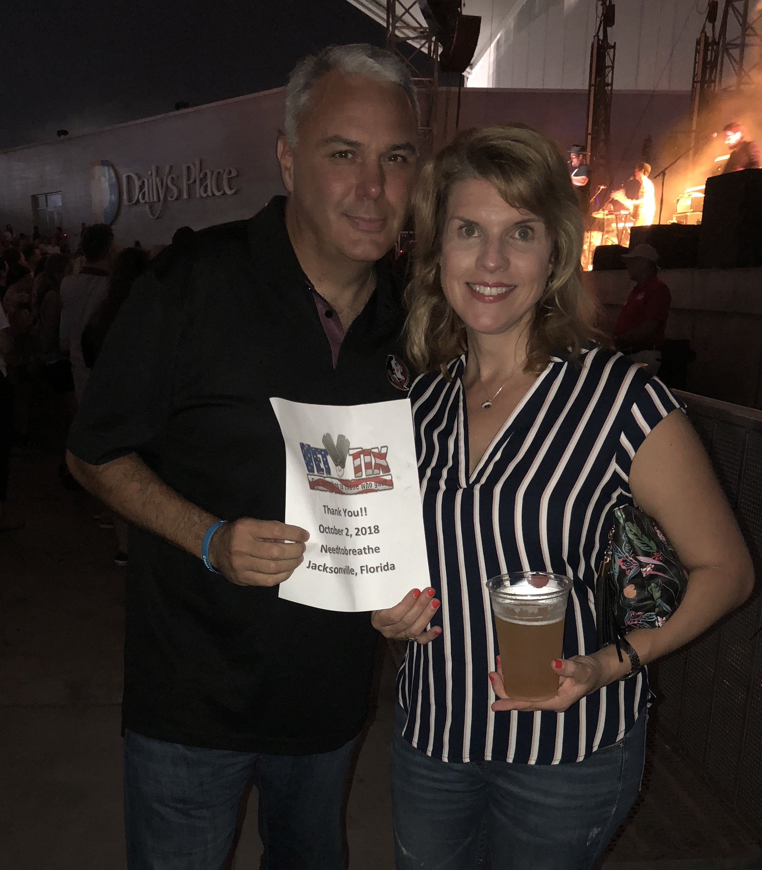 Thank you Live Nation and VetTix for providing the opportunity to have Pit Tickets and see the band NeedToBreathe. The band and two other supporting bands were all great and high energy. We really enjoyed ourselves!!!!!