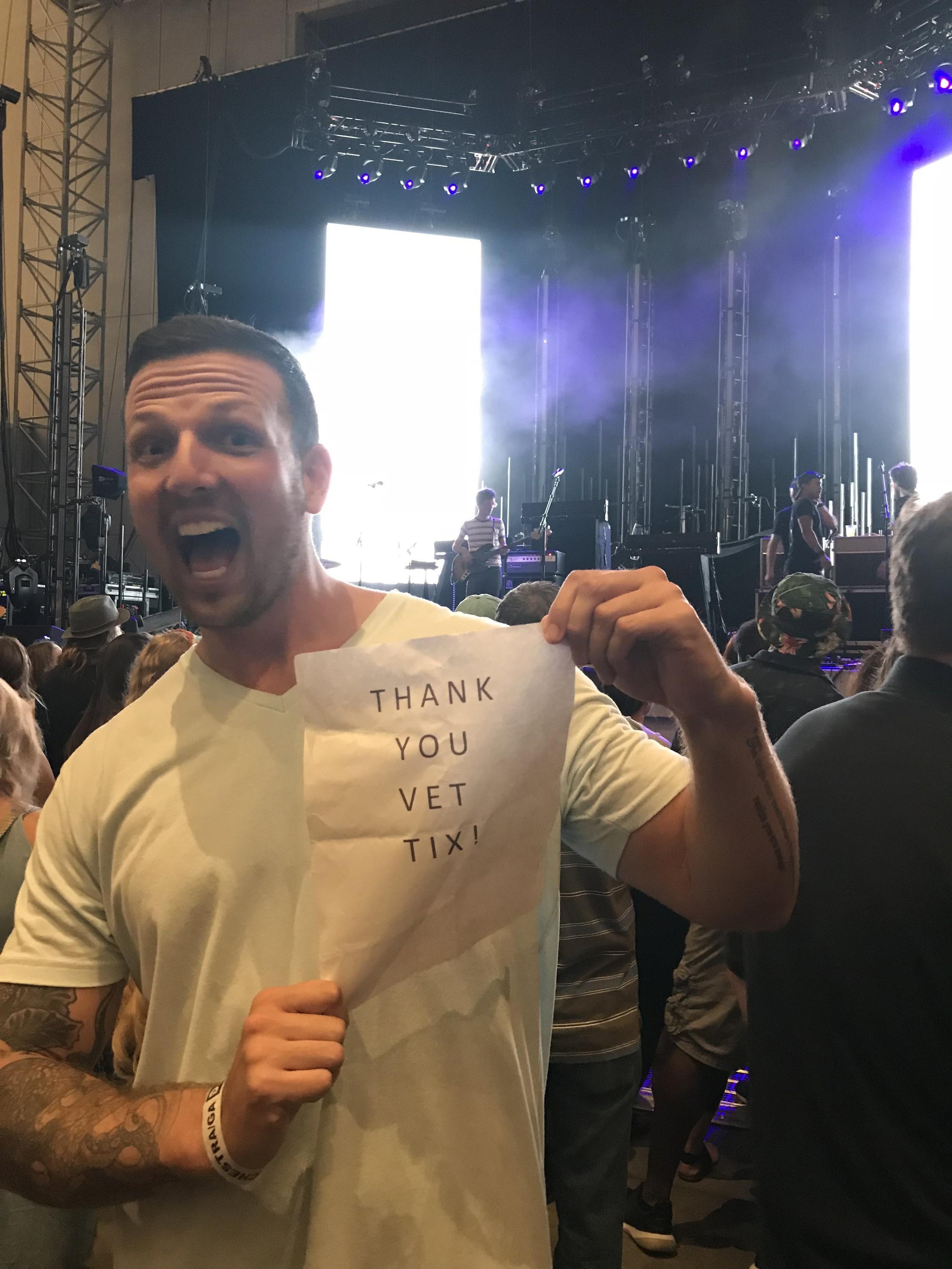 Awesome evening with husband. Could not have done without Vet Tix 😀