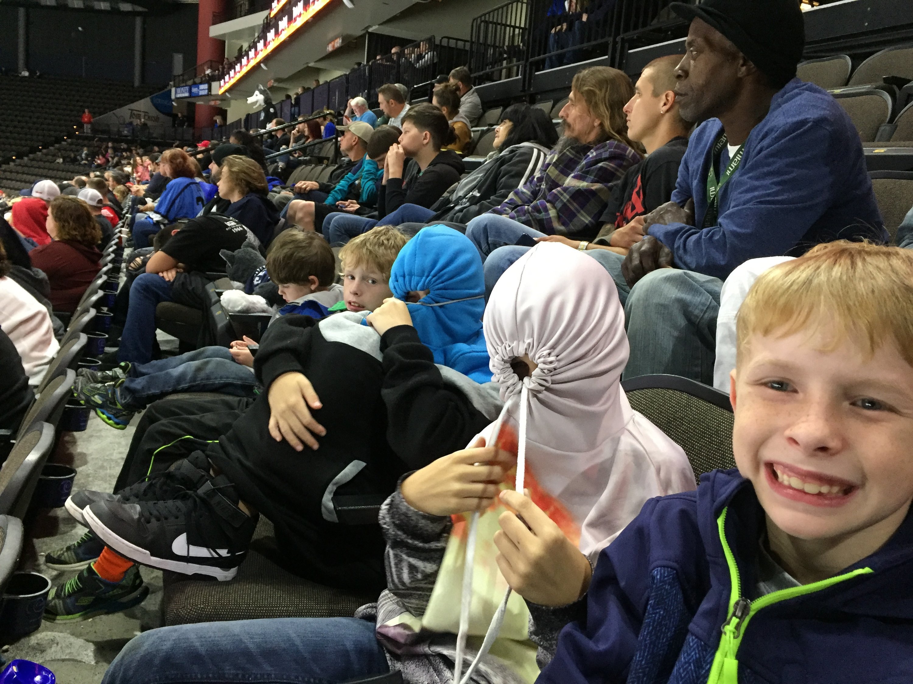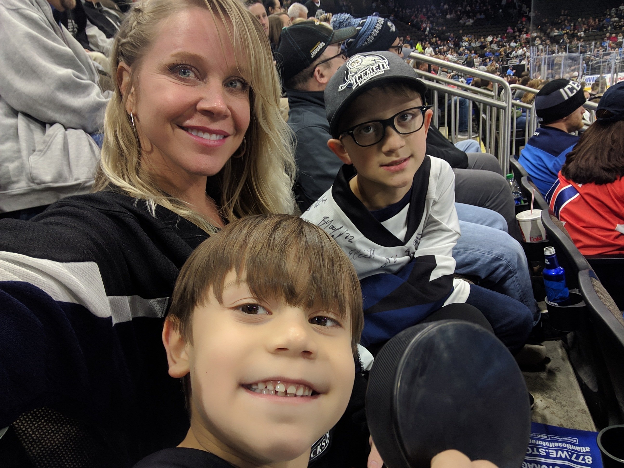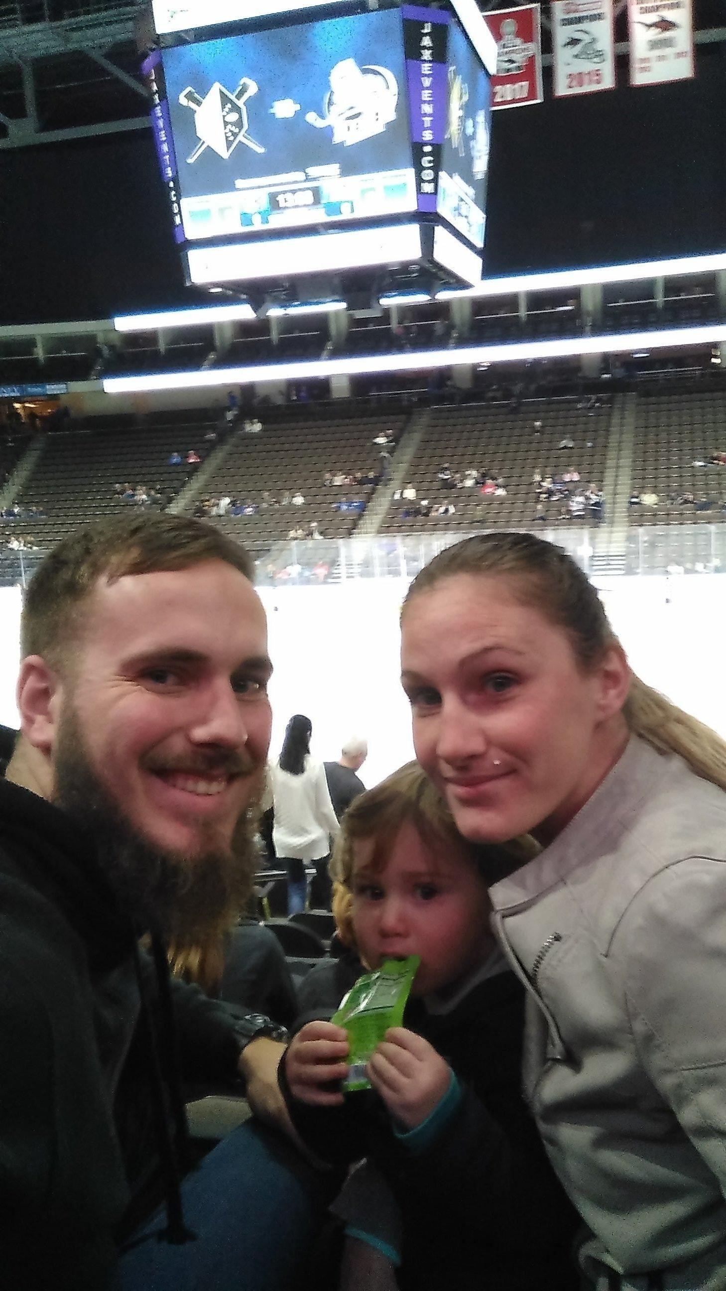 The family watching the Icemen take on the Wheeling Nailers. The kids both got pucks from their favorite players during practice and had a great time. Thank you VetTix and Jacksonville Icemen for another fun outing and everything you do to support veterans!