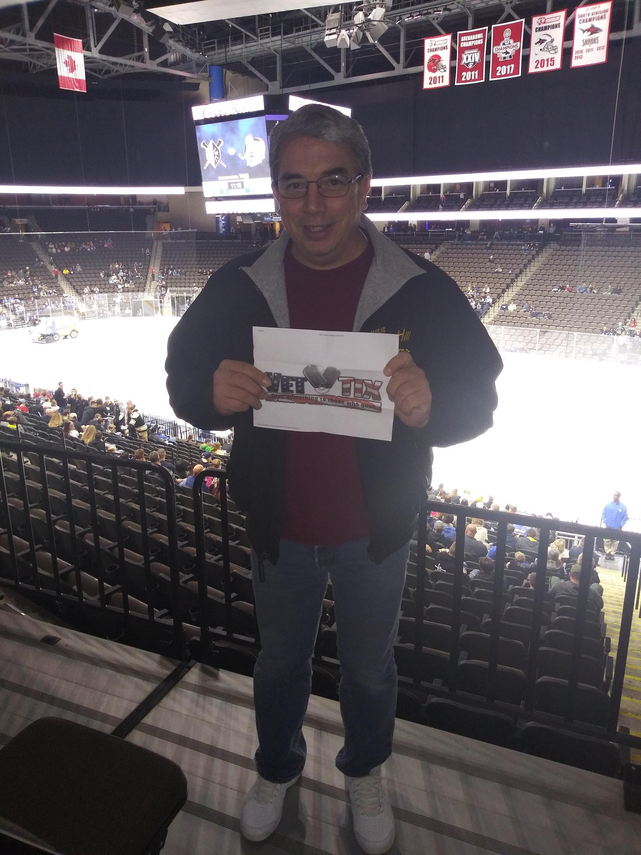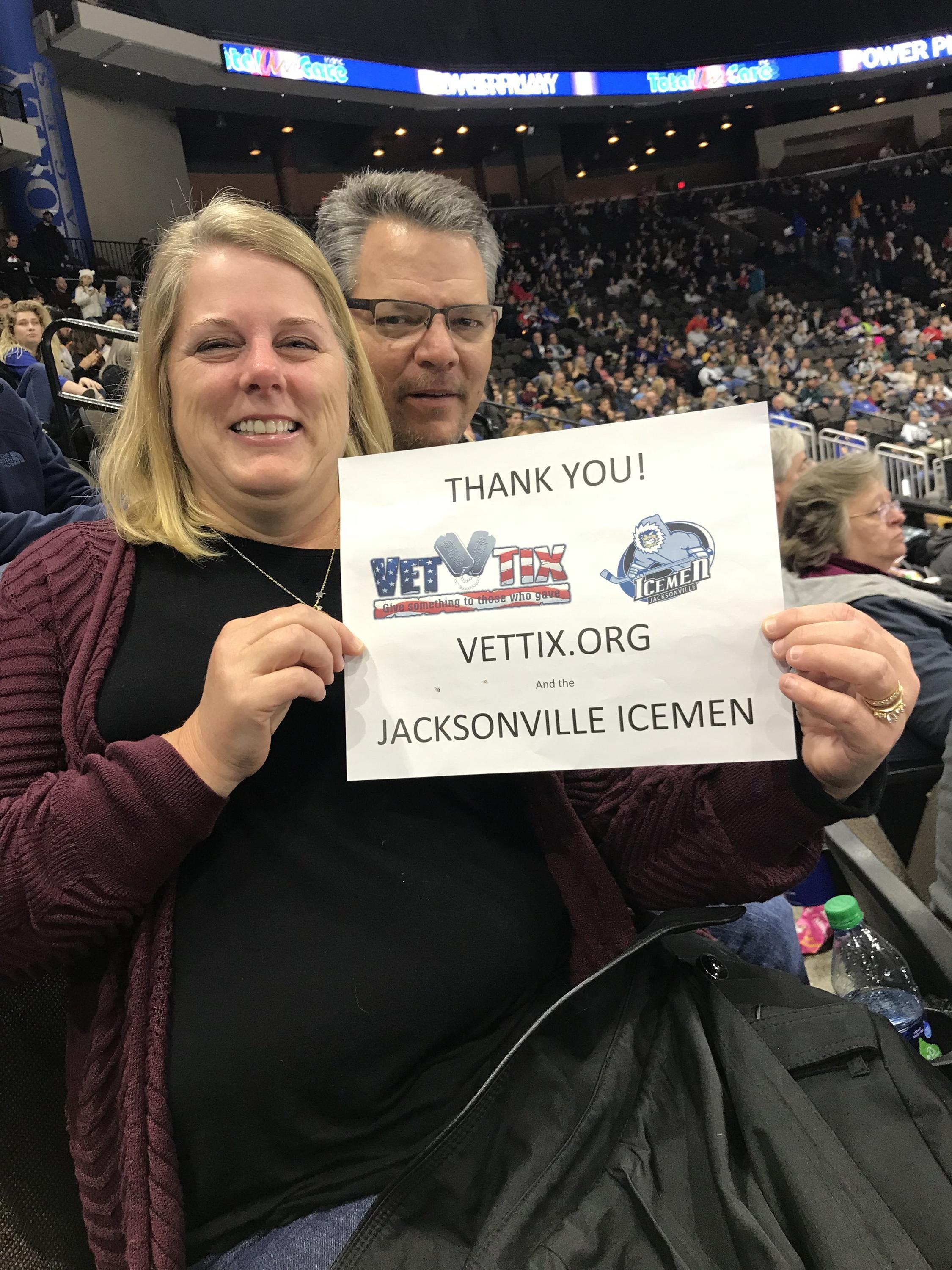 Thank you Jacksonville Icemen and VetTix for thee great seats! Sorry fot the tough loss, but it was a good game and a good crowd. Go Icemen!
