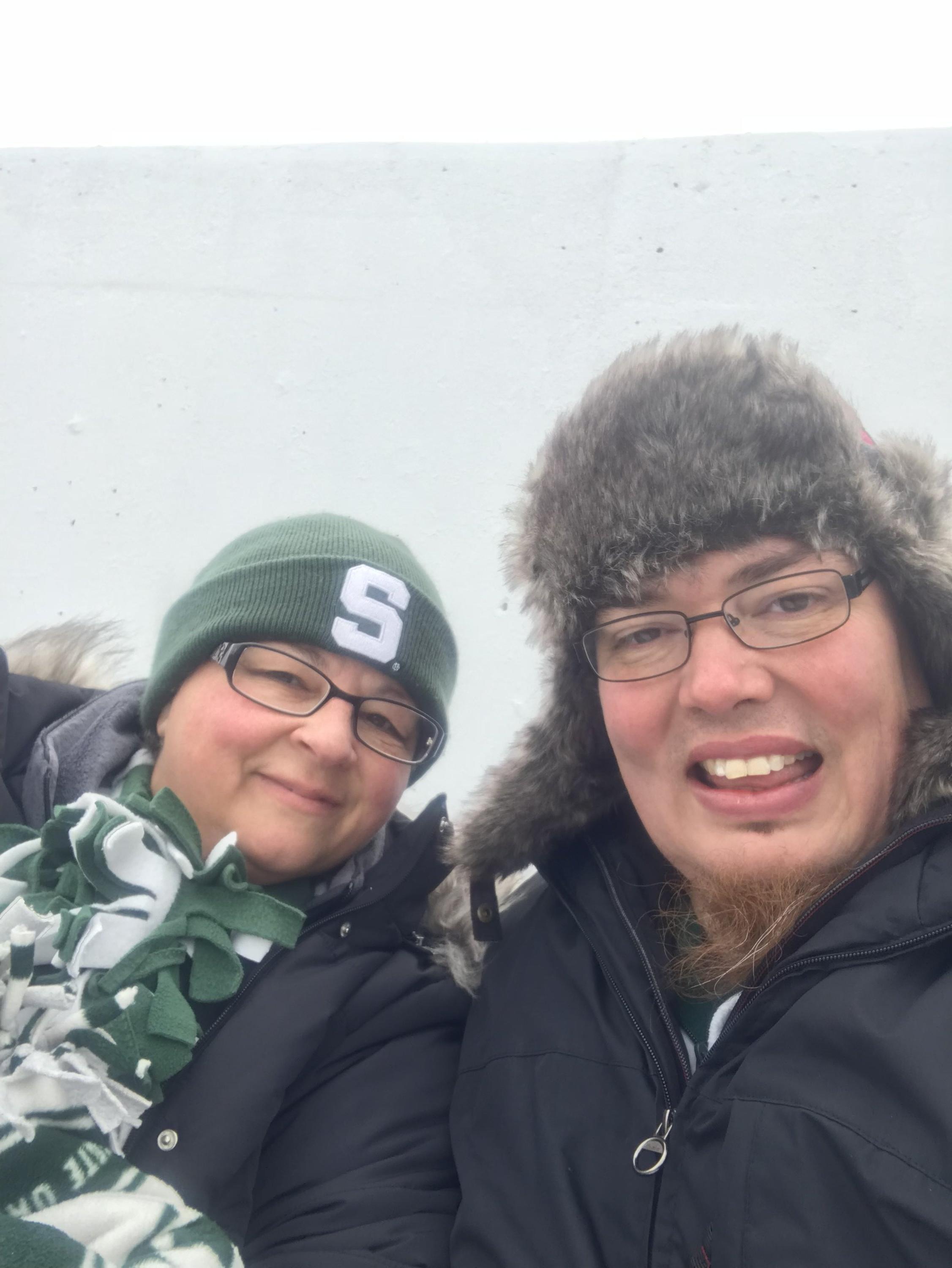 I would like to thank everyone involved in helping make dreams come true. I'm a retired disabled Veteran with a family of 7. We requested 4 tickets and was awarded 5. My 1st thought was to take just my sons. When my 19 year old suggested he'd had tickets for his girlfriend and himself. My wife and I immediately thought of my younger sister. Going to a State game was at the top of her bucket list. I'd like to thank Michigan State and the NCAA for making dreams come true. Although we all froze and outcome wasn't what we expected, it was a wonderful experience. My sister is 63 a cancer survivor who has been clean for 22 years, never attended a State game and is a diehard green and white fan. Without your precious gift I would have never been able to make her dream come true. I also took my wife, 12 and 8 year old sons, all did our best to stay warm and cheer on the Spartans. Thank you again CSM George Reeve