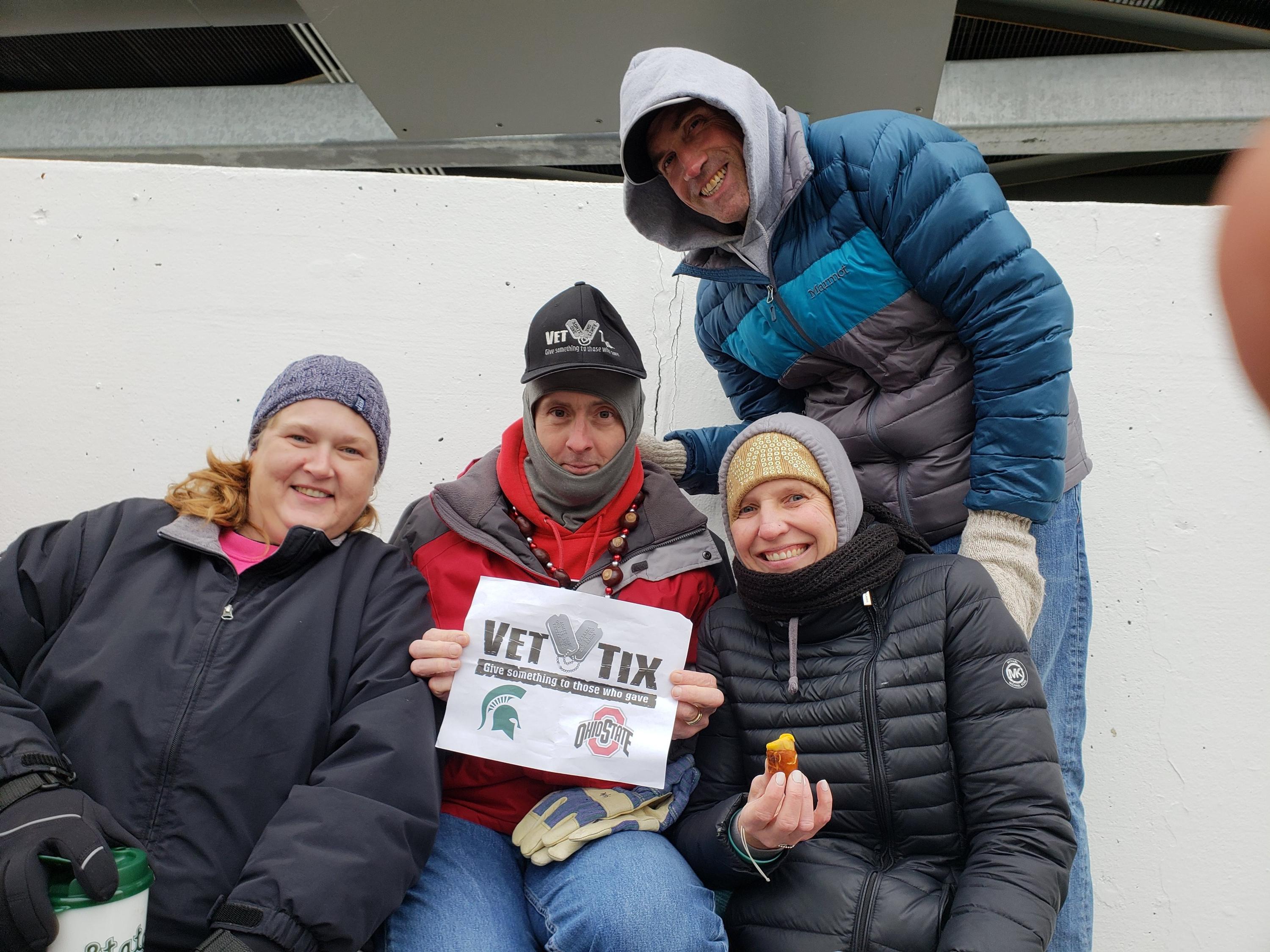 Thank you so much VetTix! We had great seats in the stadium. My wife and I had a great day in East Lansing, a trip we would never have made without VetTix! To whomever donated these tickets thank you, it made for a memorable veterans day weekend!