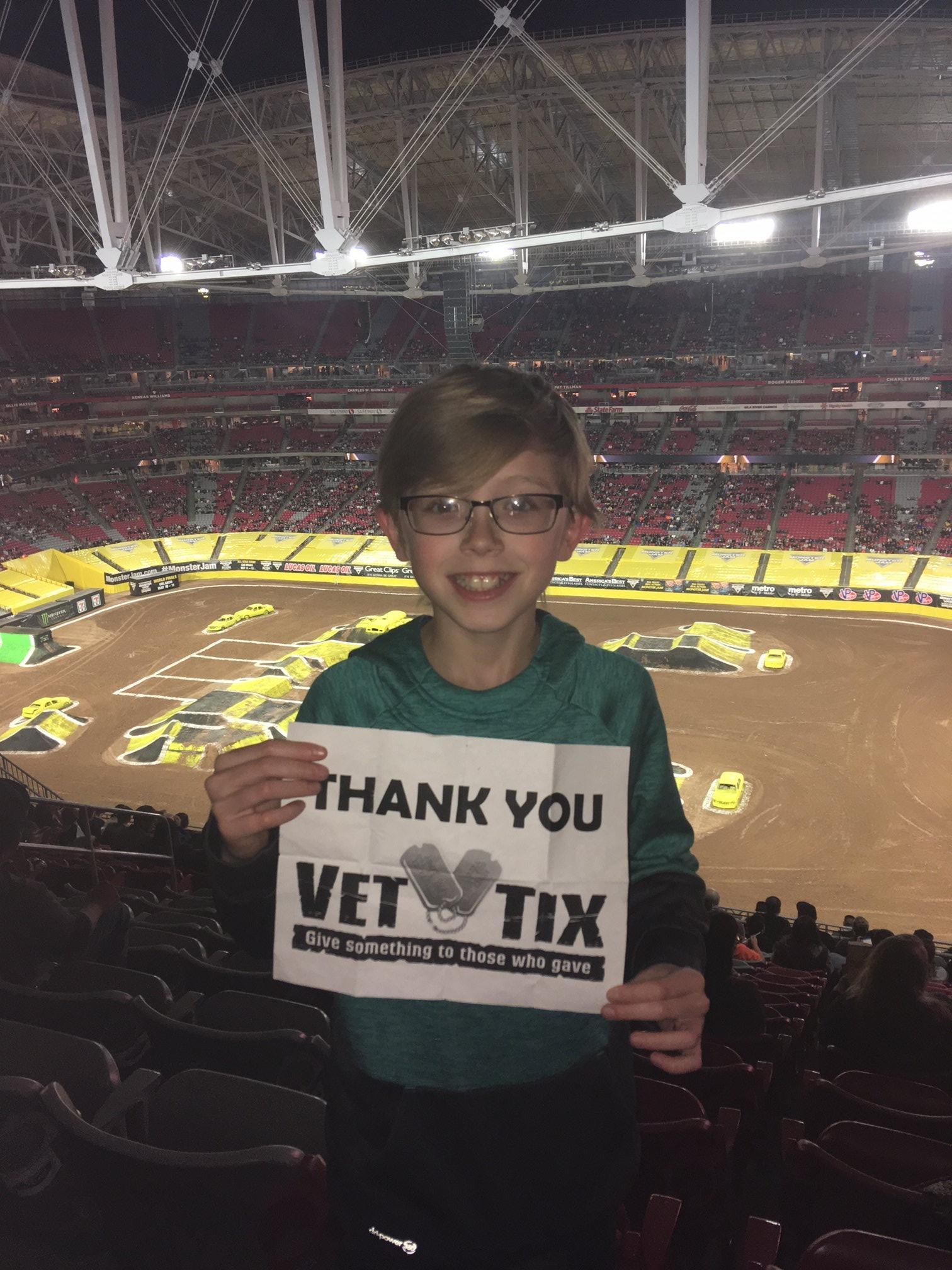 We would like to thank Feld Entertainment, Inc. and VetTix for the opportunity to attend our first Monster Jam event. It was amazing and we will be attending again in the future. All the Veterans I know that use VetTix are very grateful and thankful for all that you do for us. THANK YOU AGAIN!!!