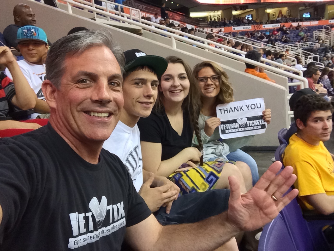 Thank you for the opportunity to attend a very exciting game. Thanks Vettix and the ticket donors for caring for our troops.