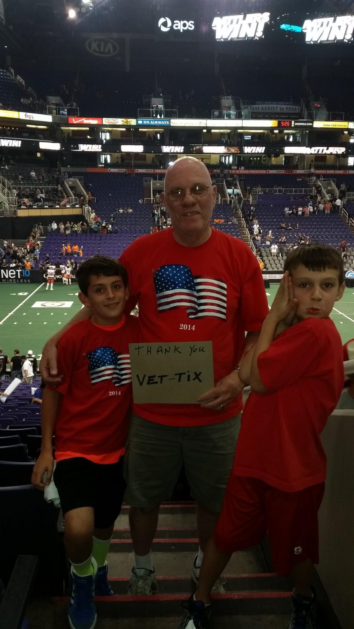 Thank the donors and Vettix so much for the tickets to Arizona Rattlers game. We took our grandchildren and we all had a great time, again thank you so much.