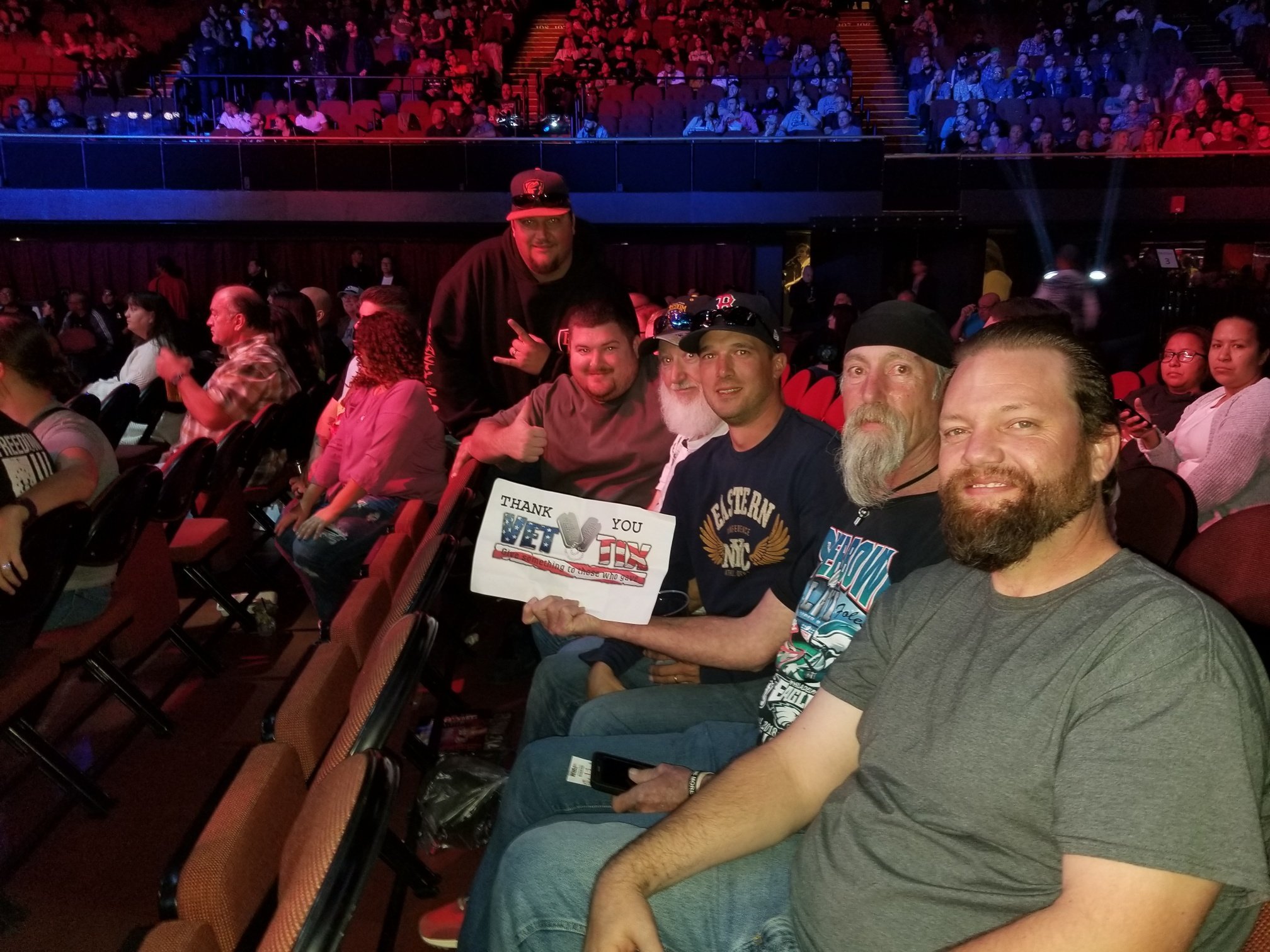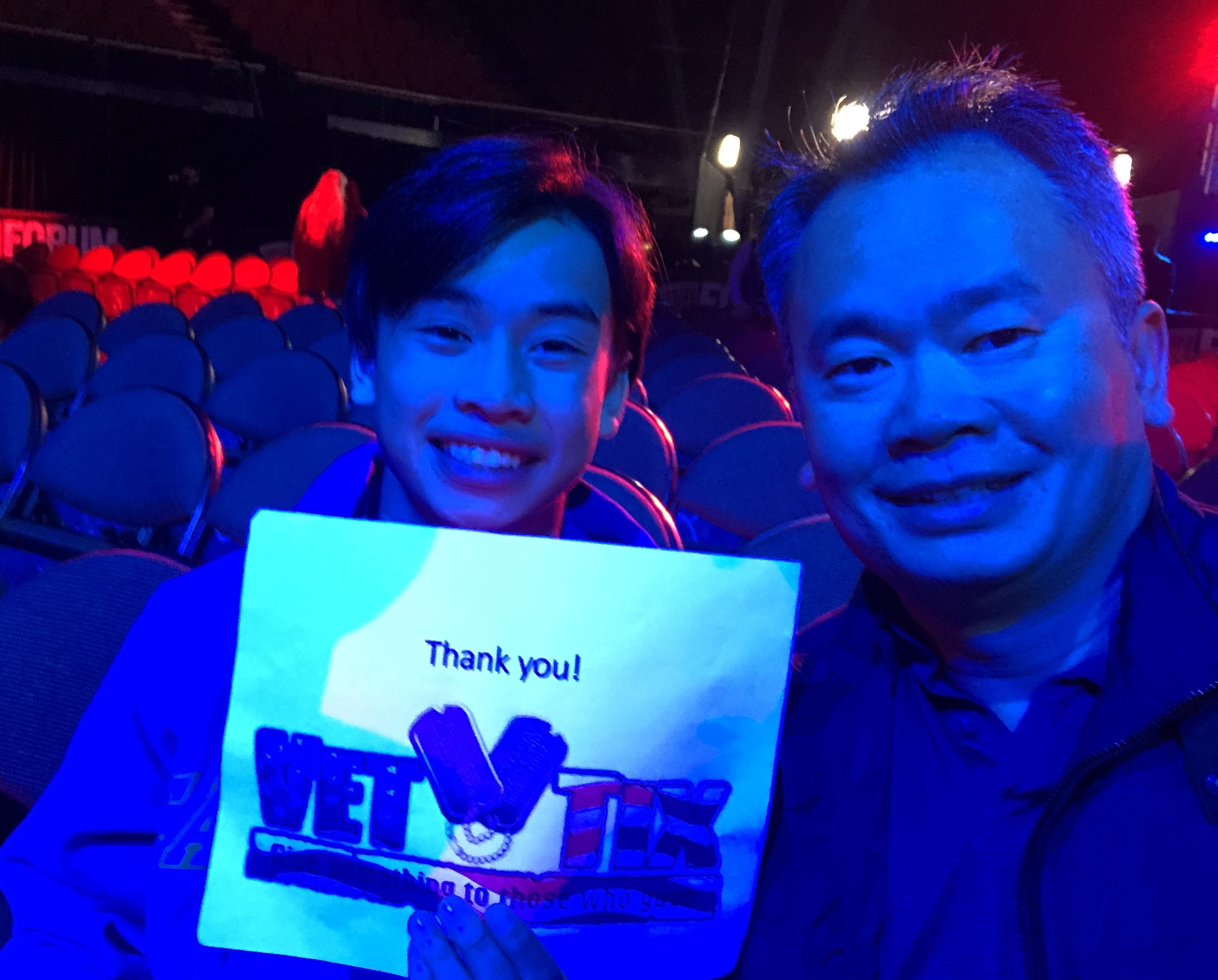 Thank you for the awesome evening... The seats were fantastic... The event ws exciting... And the venue was easy to get to, easy to get out of... The staff needs to be commended... My has to be in a wheelchair for some things involving alot of walking due to severe medical conditions and all the staff was extremely welcoming and courteous and willing to help for anything... My wife also had a cousin she hadnt seen in nearly 20 years come with us... It was a perfect night for such an event with all the americanism and red, white and blue everywhere... Plus there was a Marine Corps Color Guard and my seat happened to be my favorite number ( 13 )... What a way to kick off a year of living... And thank you VETTIX for providing such a great way to give back to those who have served this country... My hats off to you all... SEMPER FI...