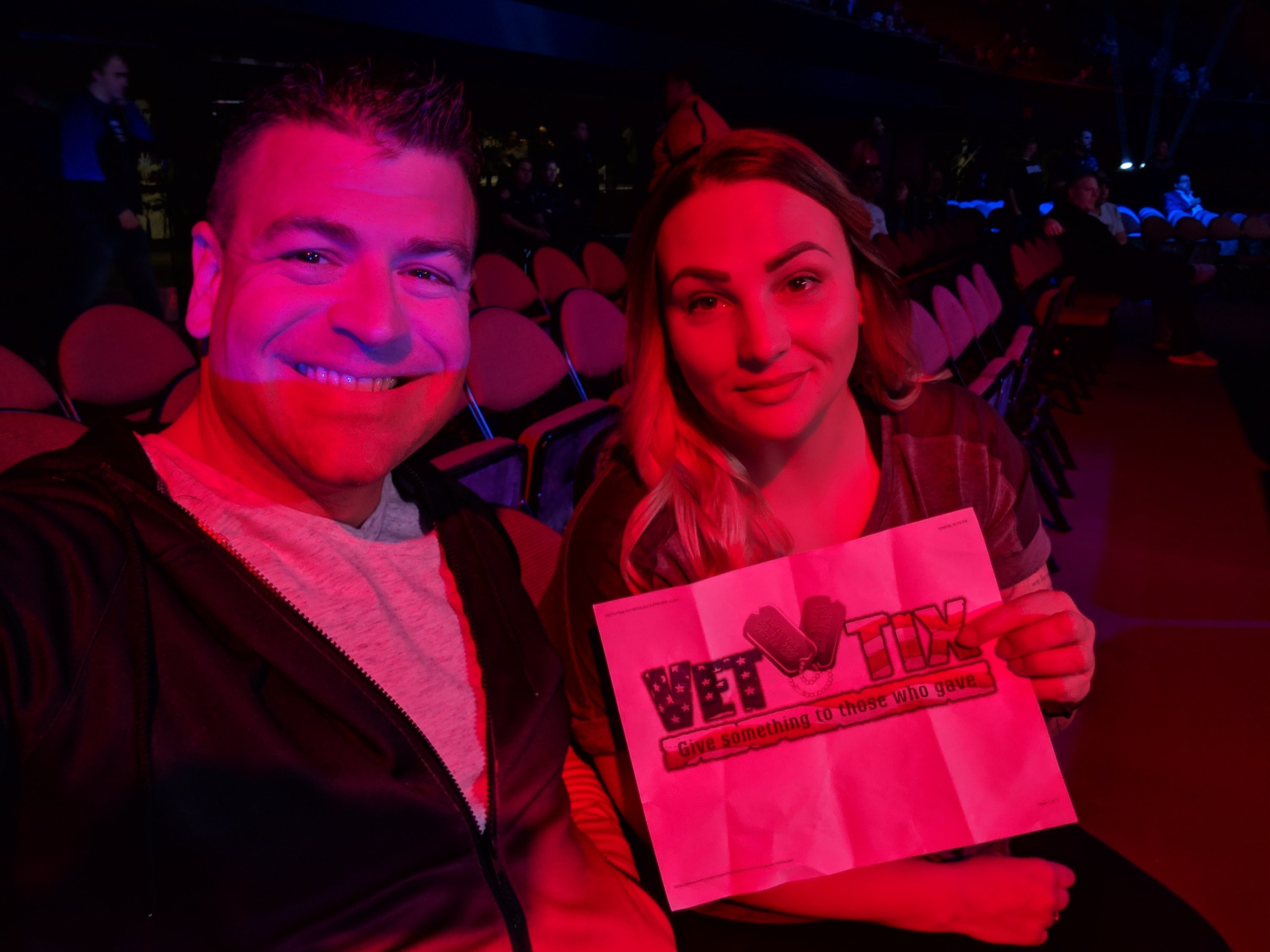 Thank you VetTix and Bellator MMA! We had amazing seats in the second row and such a wonderful time together! My husband was recently deployed and we love spending time together. We used to watch MMA together before we even got married but had never been to a live event. Now, I know we'll be back, the event was great! So grateful for the generosity of donors like you and to VetTix.