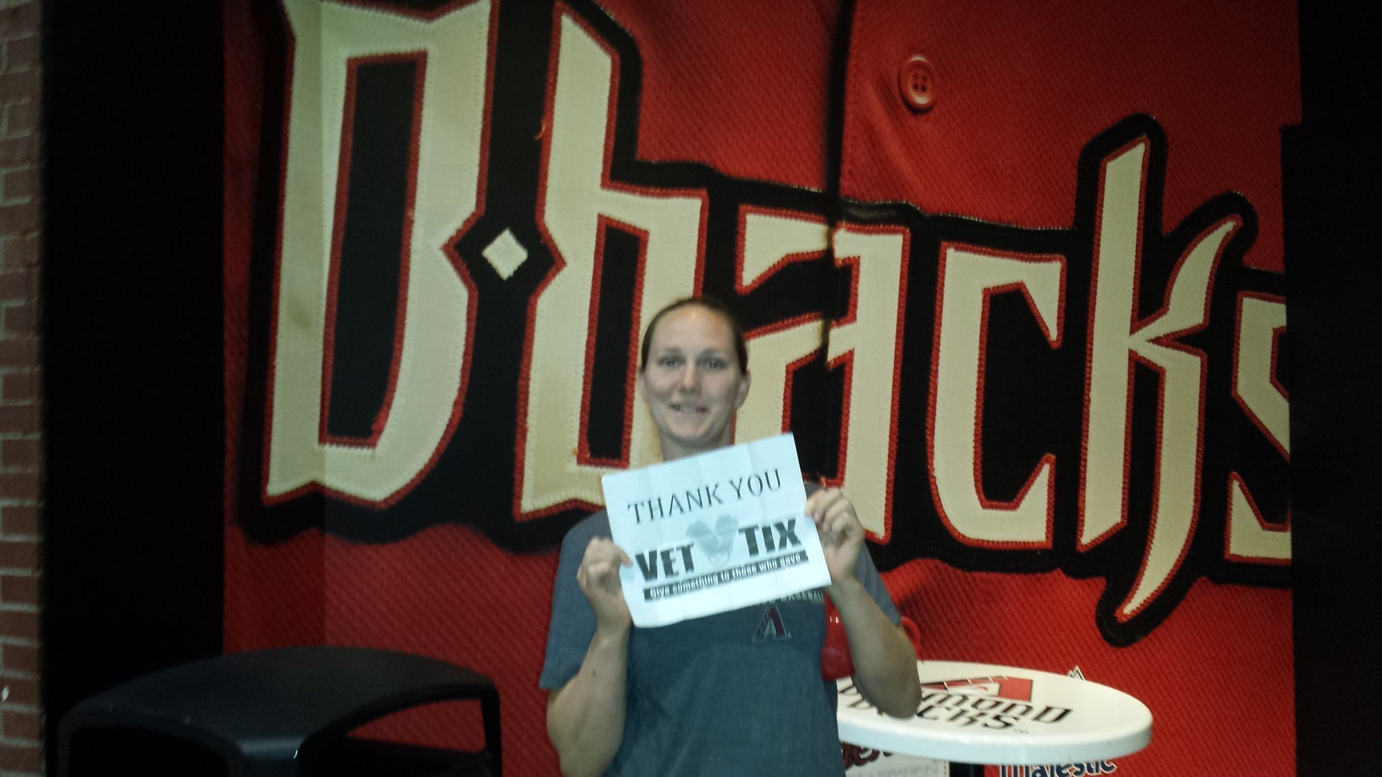Had a great time at the D-Backs game in Phoenix. It was nice to meet someone behind the Vet Tix organization (Alan). Thank you Vet Tix and thank you Diamondbacks for all that you do for our military veterans.