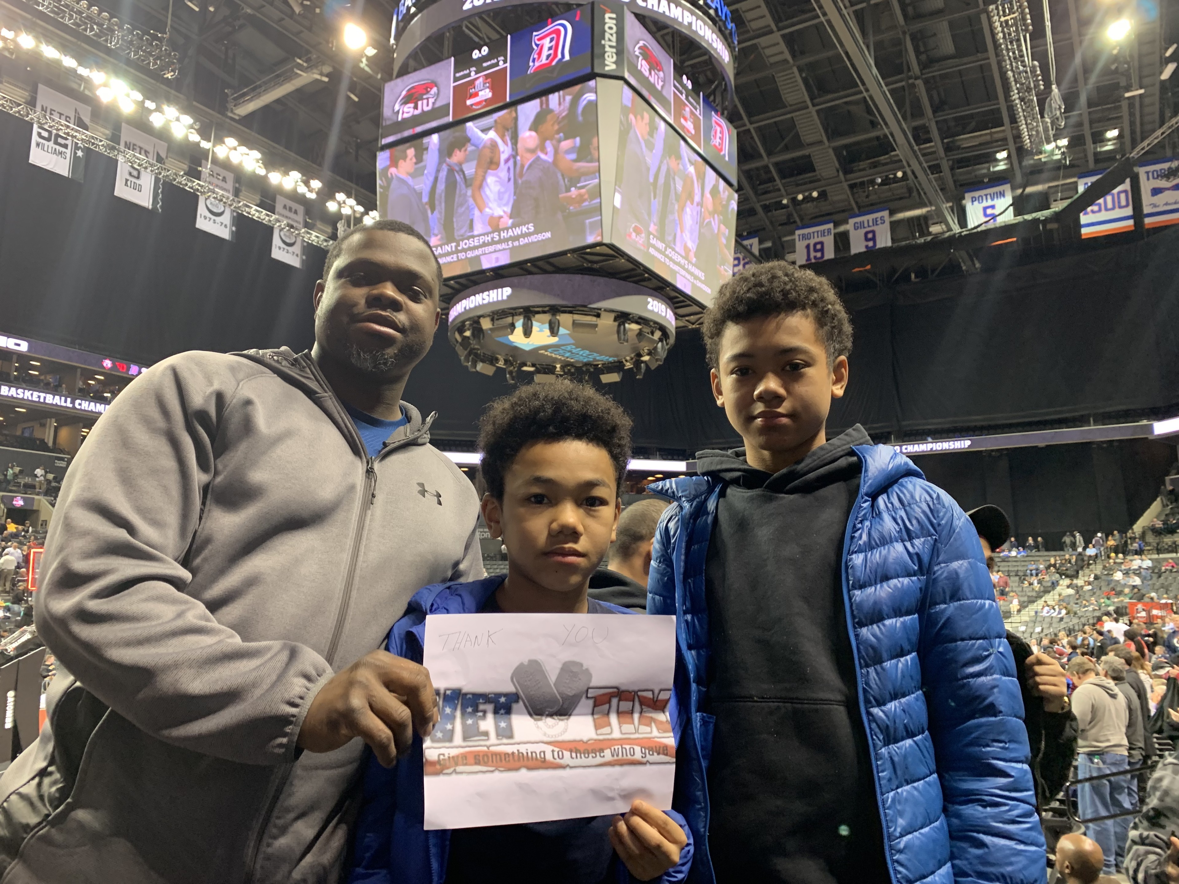 The Brothers and I had a great night. Thank you to each and every individual that helped to make this experience available to Veterans and First Responders. Great Veterans' Tribute by the Atlantic 10! Thank you for all you do Vet Tix! Semper Fi Roger