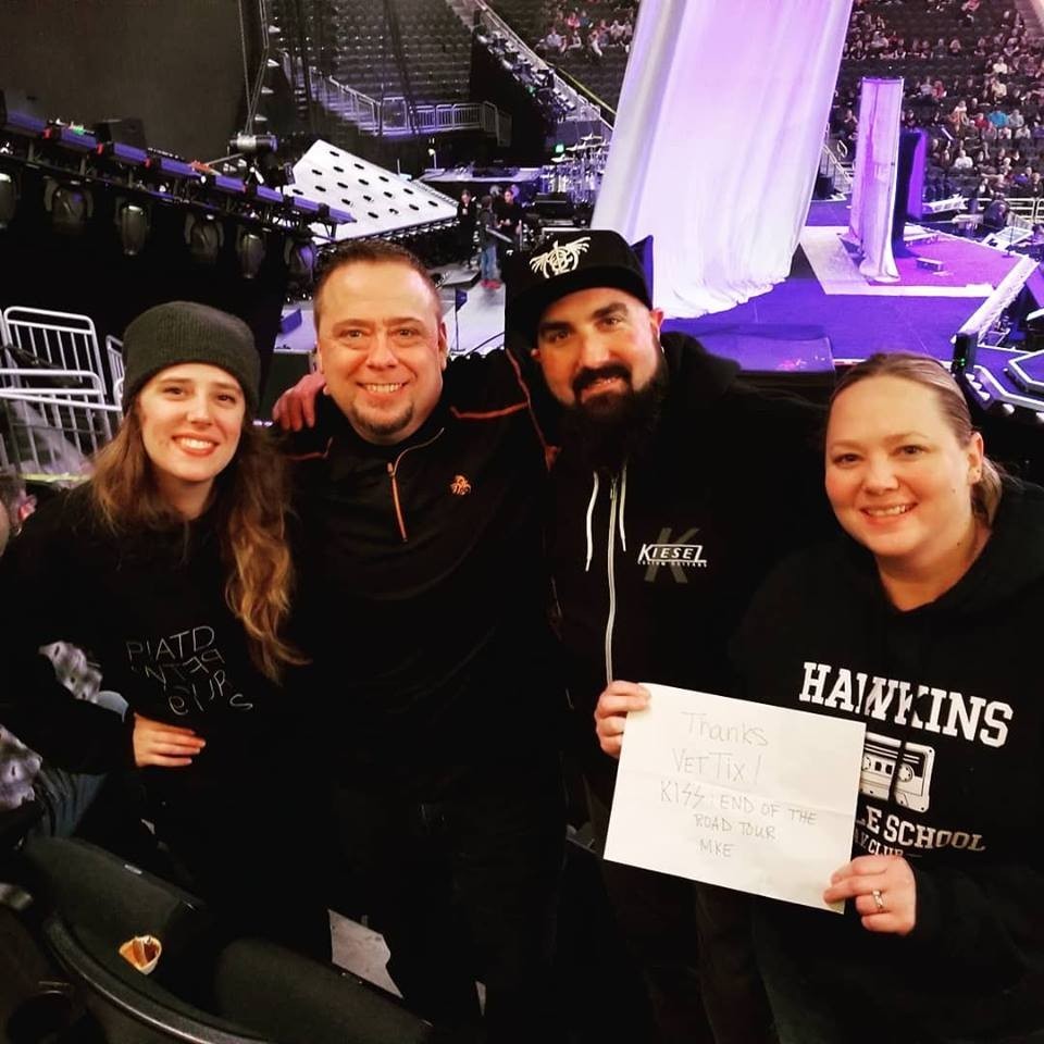 Thank you VET TIX and all donators!!! This is the second KISS concert I've seen and they've both been the greatest shows ever! I thoroughly enjoyed myself and it wouldn't have been possible without you all. As a single father of two I can't afford much for myself and what you've provided has meant the world to me! Thank you so much!!!