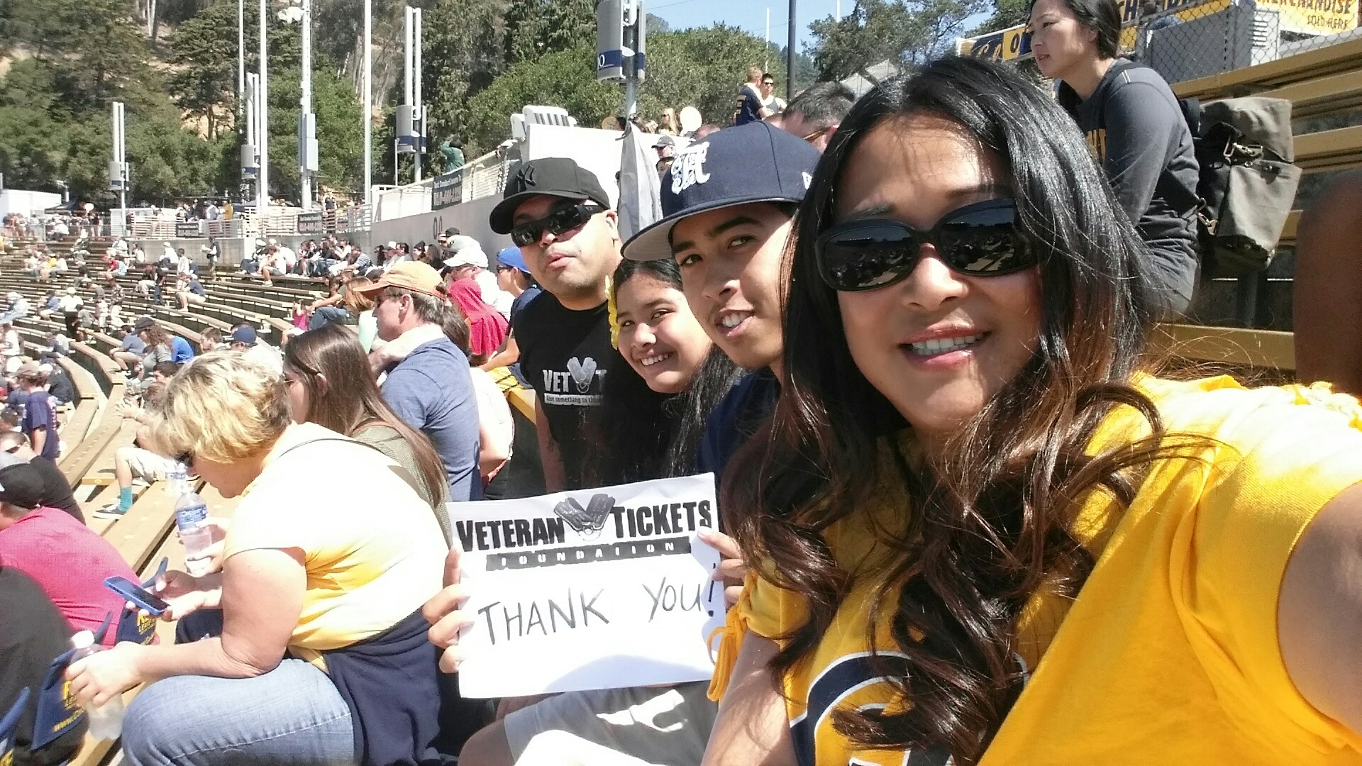 On behalf of family, I would like to offer VetTix and its most AWESOME Donors our sincerest Thank You! We really enjoyed our family outing to the Cal Bears game. "Go Bears!!"