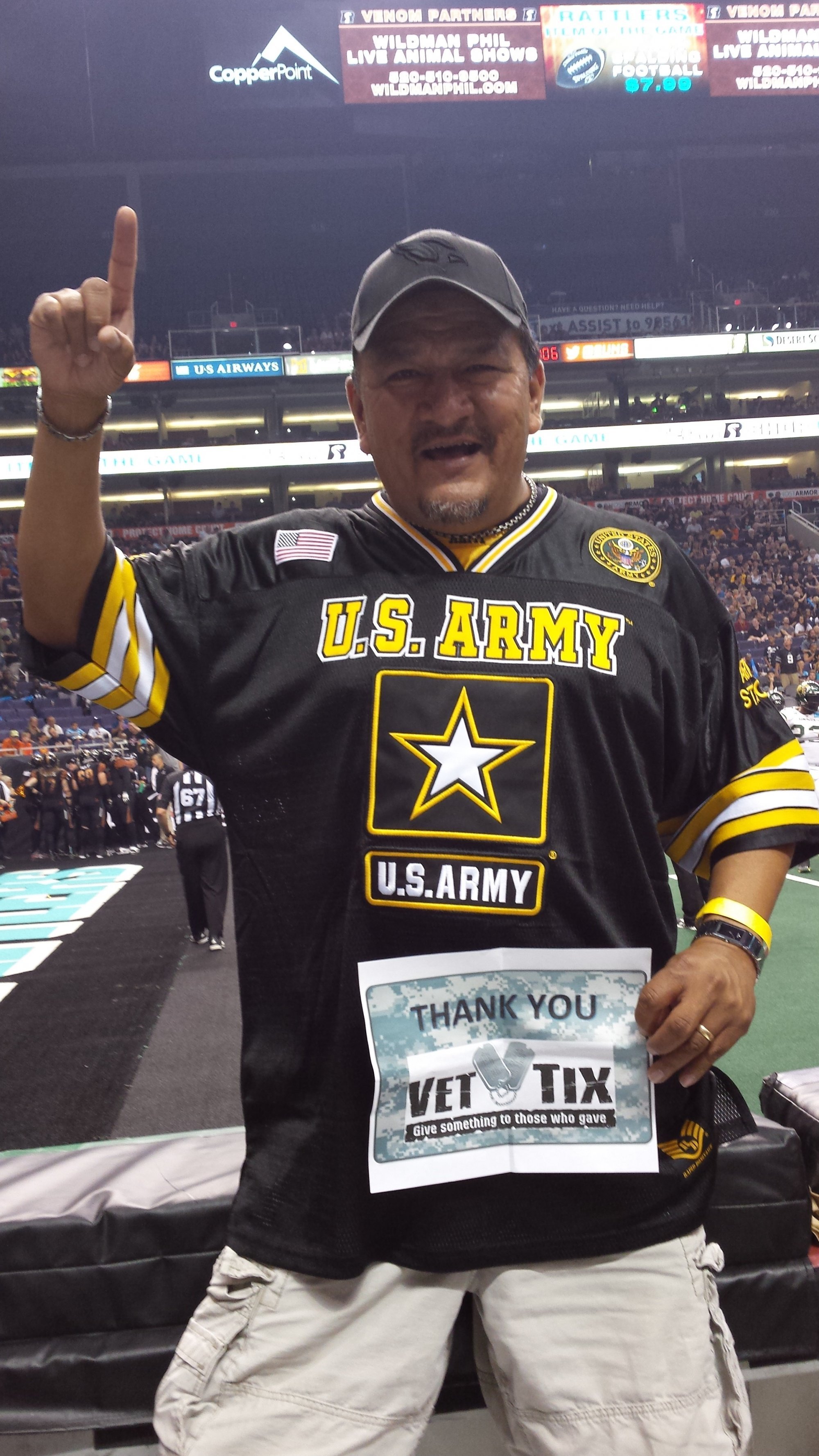 I would like to thank the Arizona Rattlers very much for the donation of the tickets to this game. I was able to take my friend and fellow vet as well as his nephew who had just graduated from USMC Boot Camp the Friday before the game. Thank you again and lets's get a 3rd Straight Arena Bowl Championship!