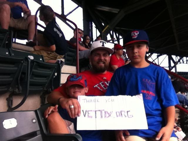 Thank you vettix.org and donors for allowing me the opportunity to take my son and niece to their first Texas Rangers baseball game. To see the smiles on their faces was priceless! Once again, thank you!