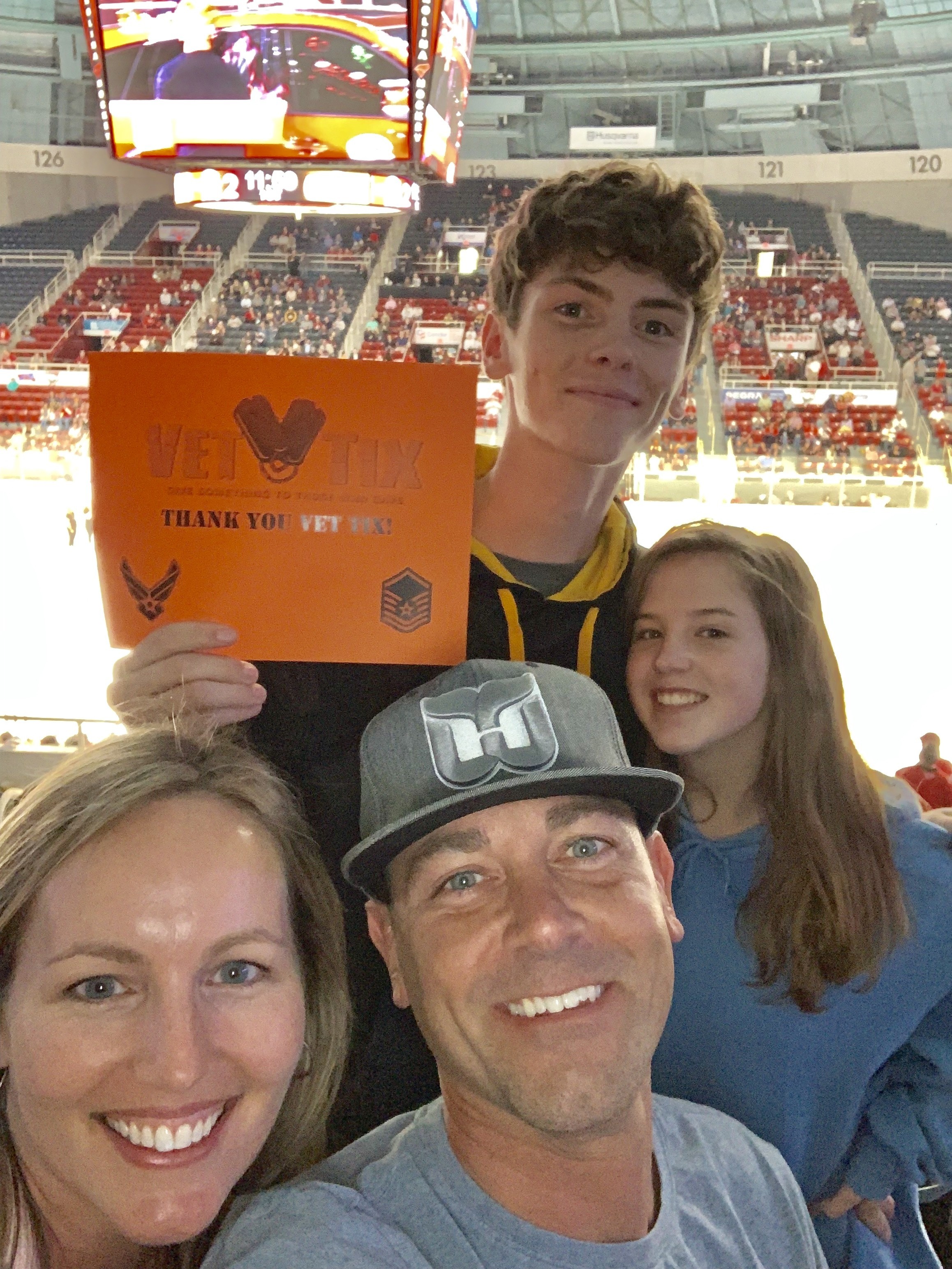 I want to thank the many donors who made it possible to take my family to the Charlotte Checkers playoff hockey game. The seats were awesome! I really appreciate folks who support VET TIX!