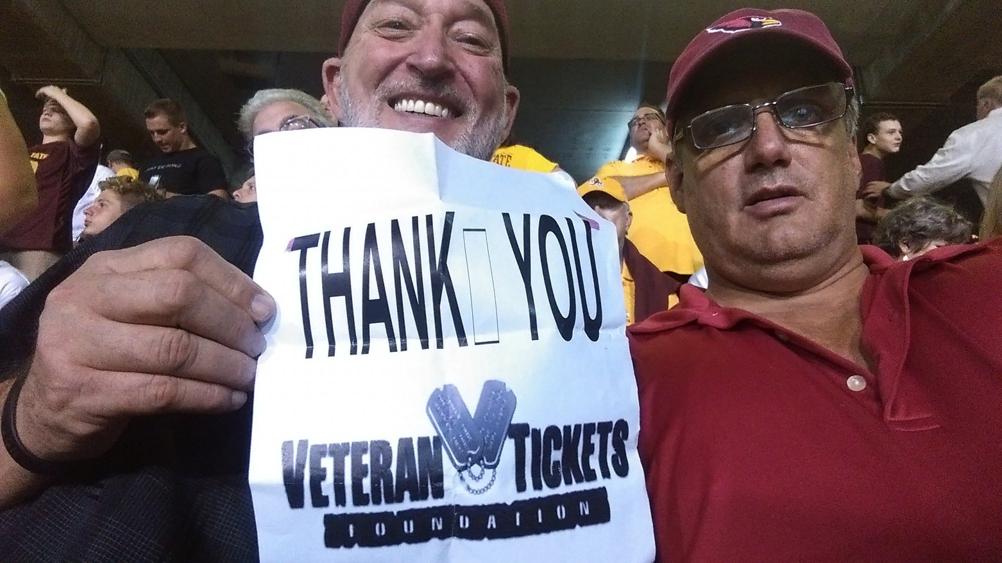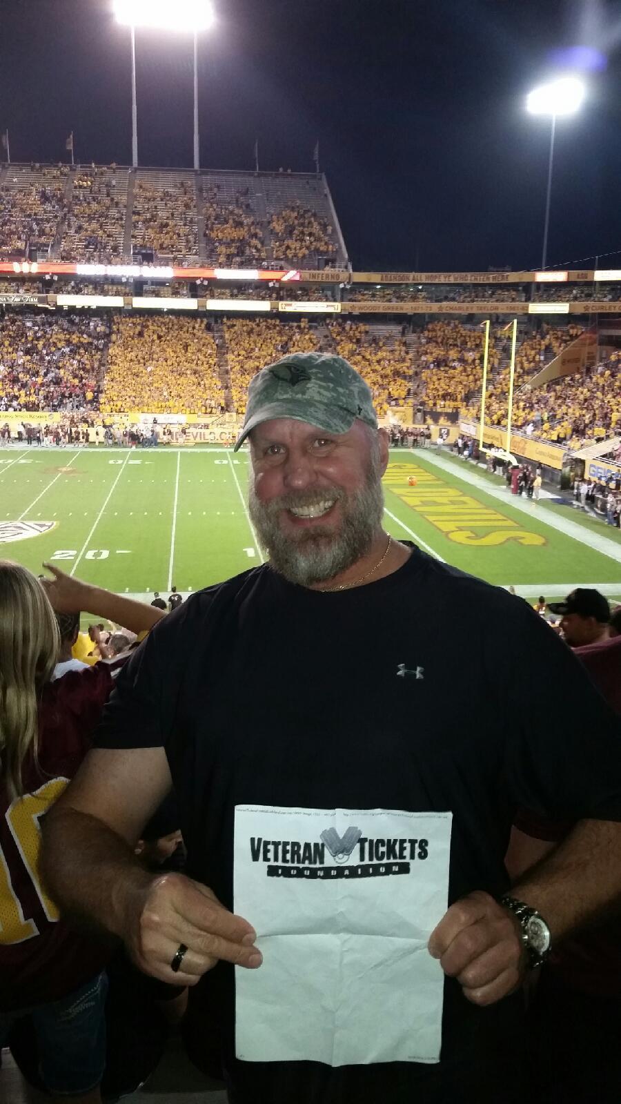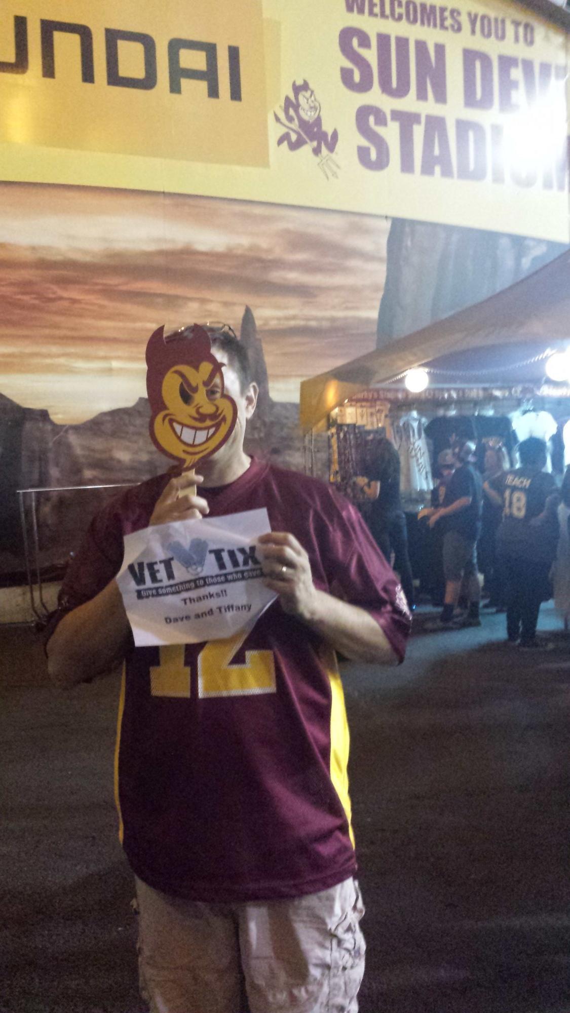 Thanks Vet Tix and to the rest of the donors for ASU Utah football game tickets. Nothing like watching some top 20 college football. We really enjoyed ourselves. Thanks again!!!