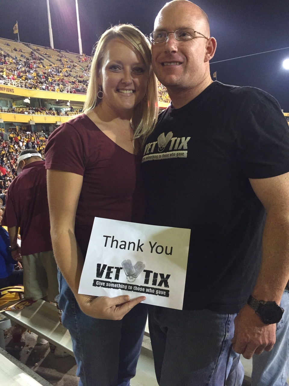 Woot! Woot! Go ASU! We had a lot of fun at the game on Saturday night! Thank you for donating tickets to Vet Tix! Our family appreciates the opportunity for some football fun!