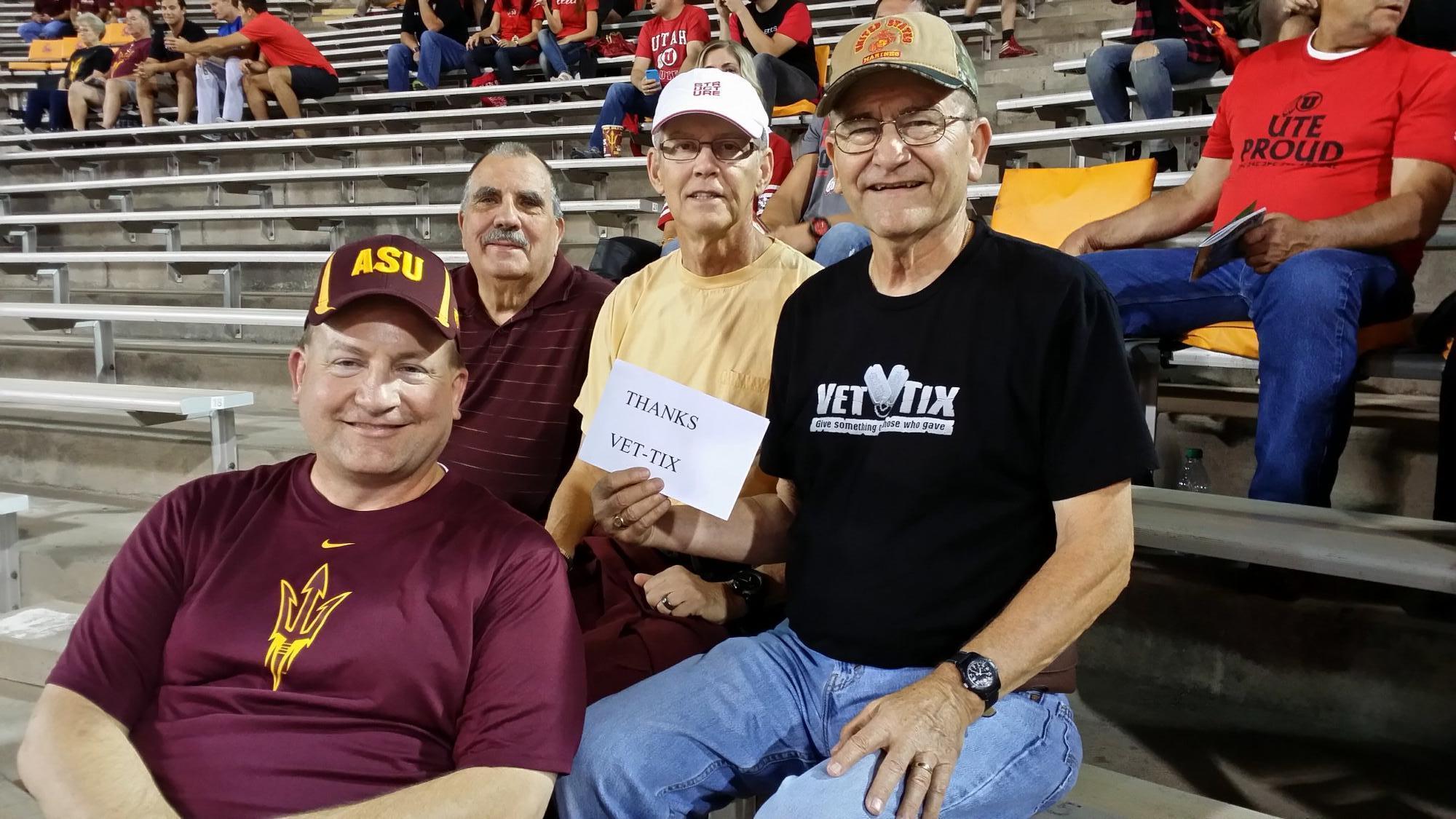 Thanks Vet Tix for the opportunity to see Arizona State vs. Utah NCAAF. The seats were awesome and I never would have had the opportunity without you guys. Thanks