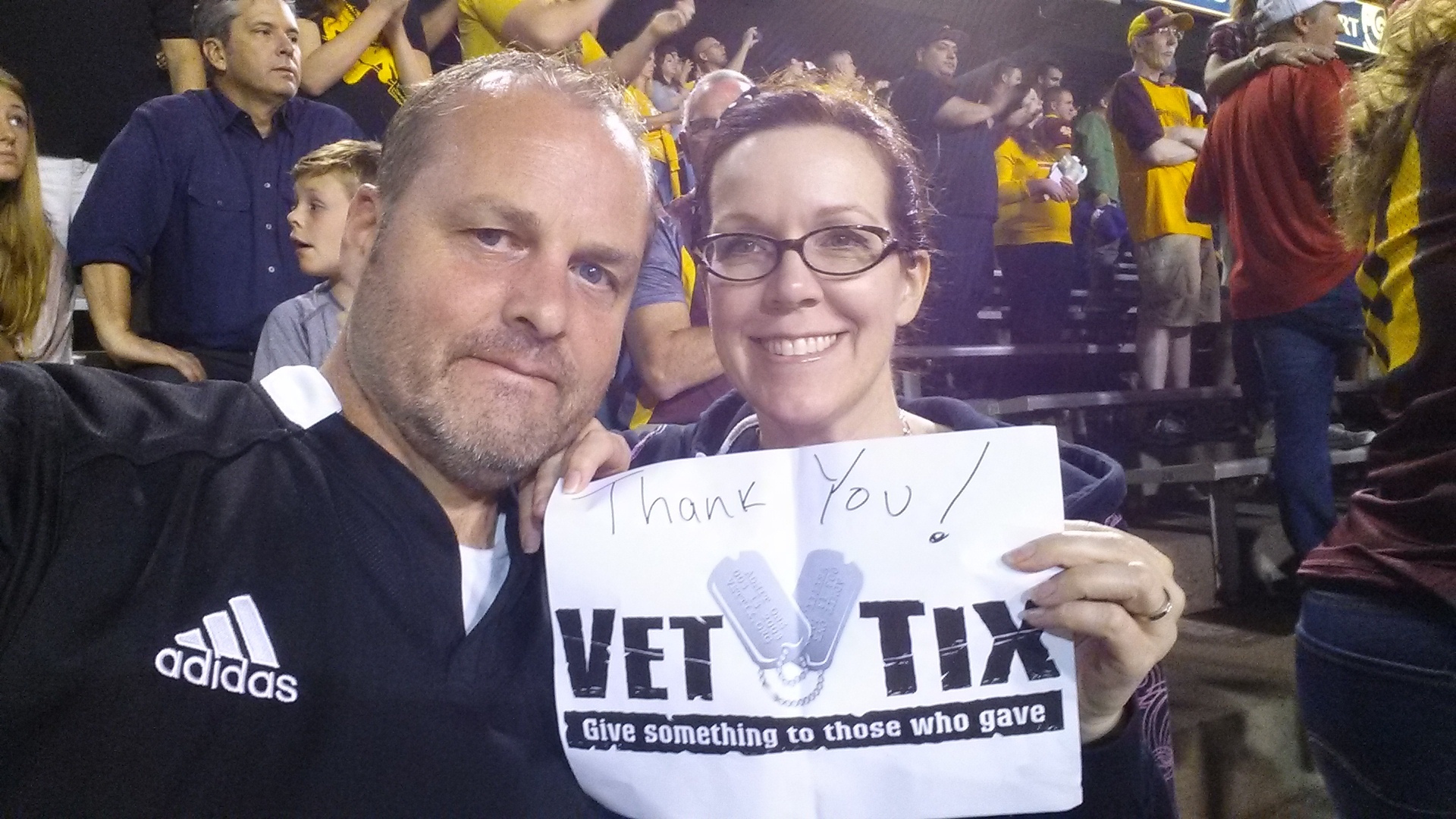 Thank You ASU, Vet Tix, AZ National Guard, and Donors! We had a great time at ASU Homecoming with an exciting win with ASU beating Utah in OT. This was my first ASU football game and really had a great experience. We definitely want to do this again. Thank you, Thank You, THANK YOU DONORS for the tickets.