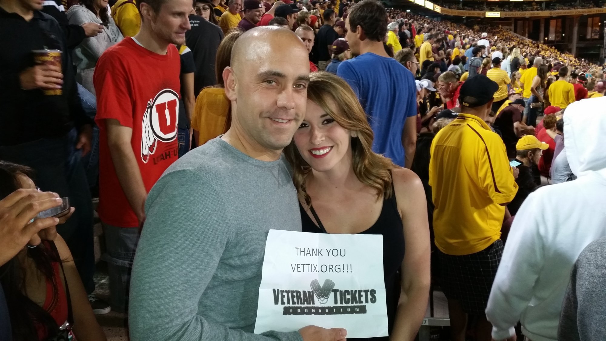 Thank you Donors and VetTix for tickets to the ASU/Utah game. I had a wonderful time watching ASU defeat Utah.