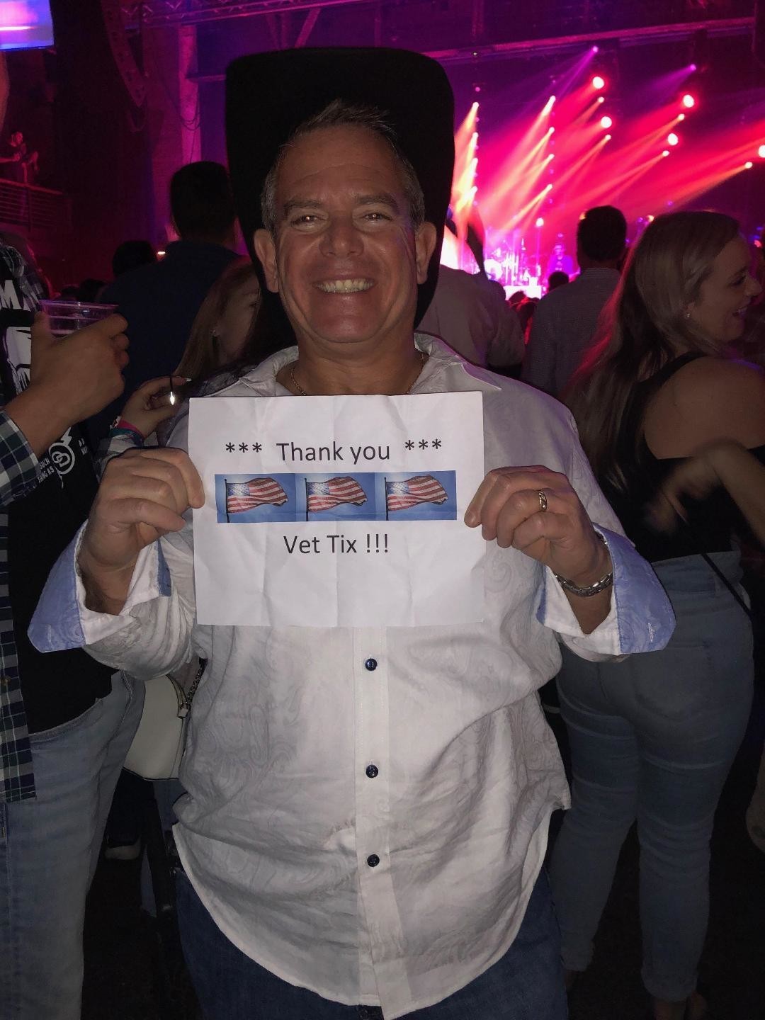 Thank so much, I'm so appreciative to the donors of these tickets and to the Vettix organization without either this great memory could not have been had.. Thank you again .