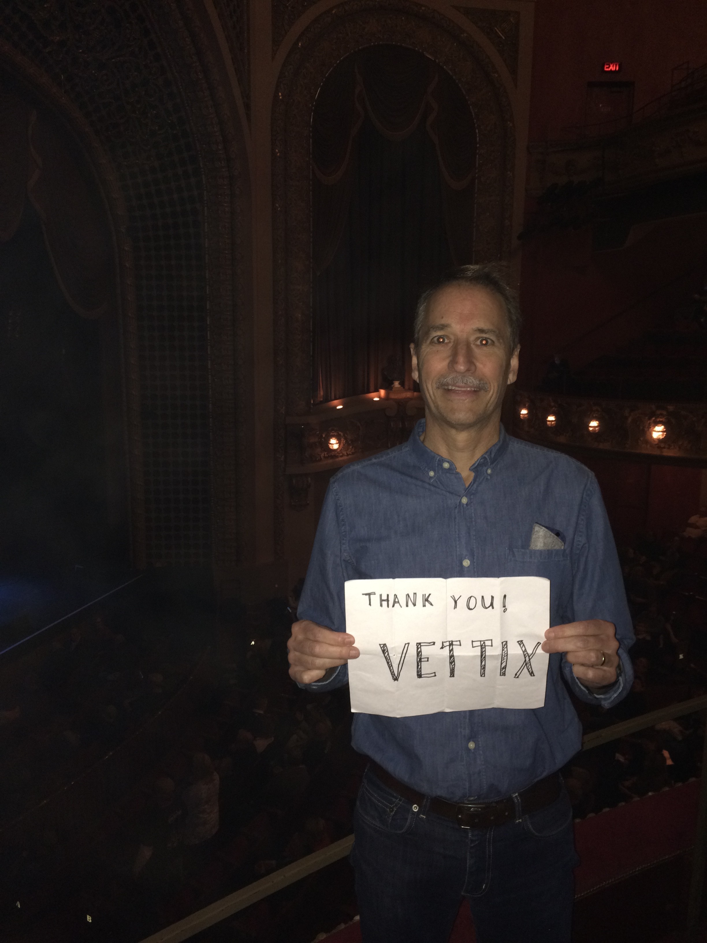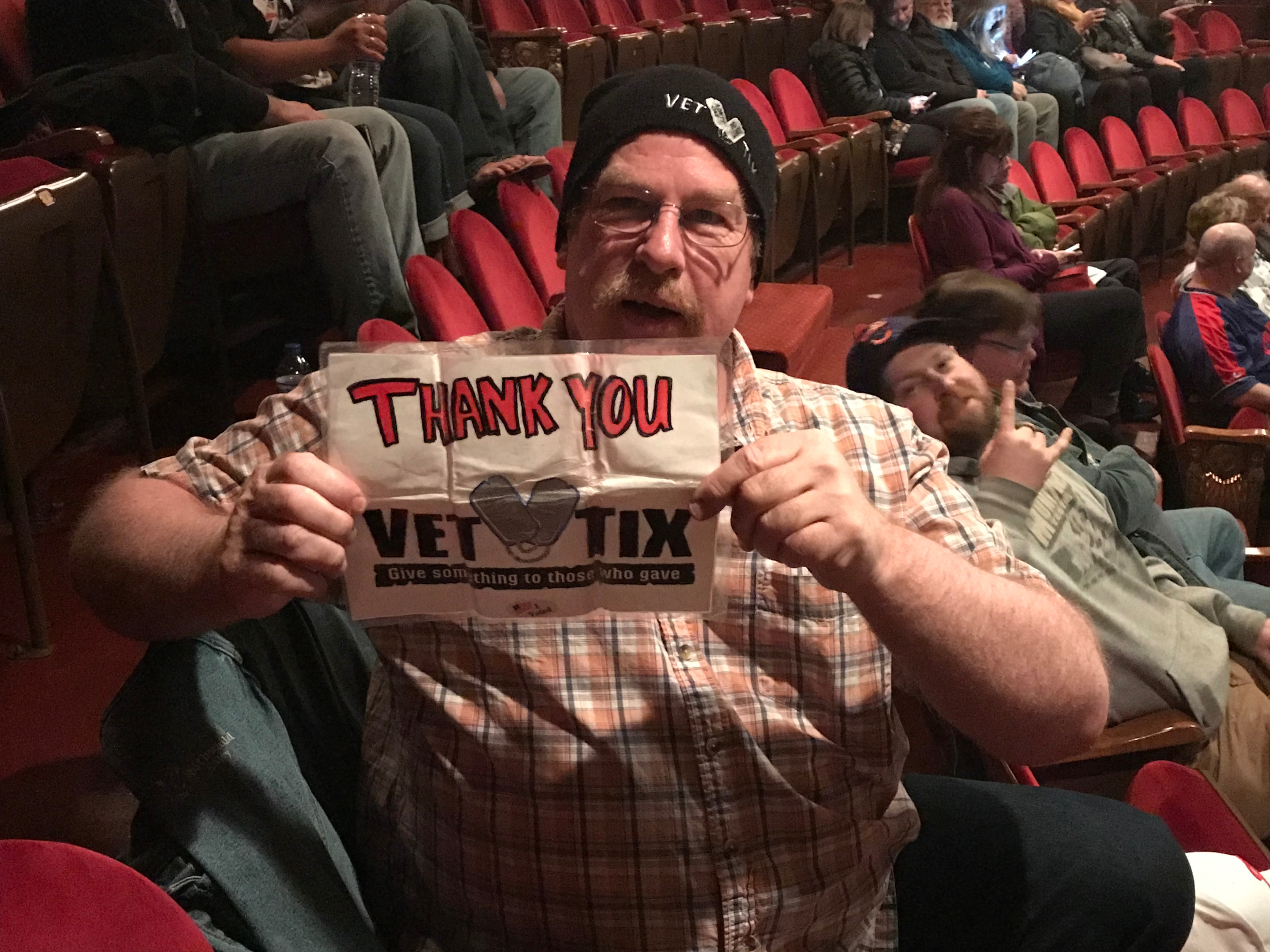 We saw a great show. Thanks Vettix, and thanks to your donors. Sat near two ladies who were doing a selfie with the Vettix sign. They were kind enough to photograph me. Thanks ladies.