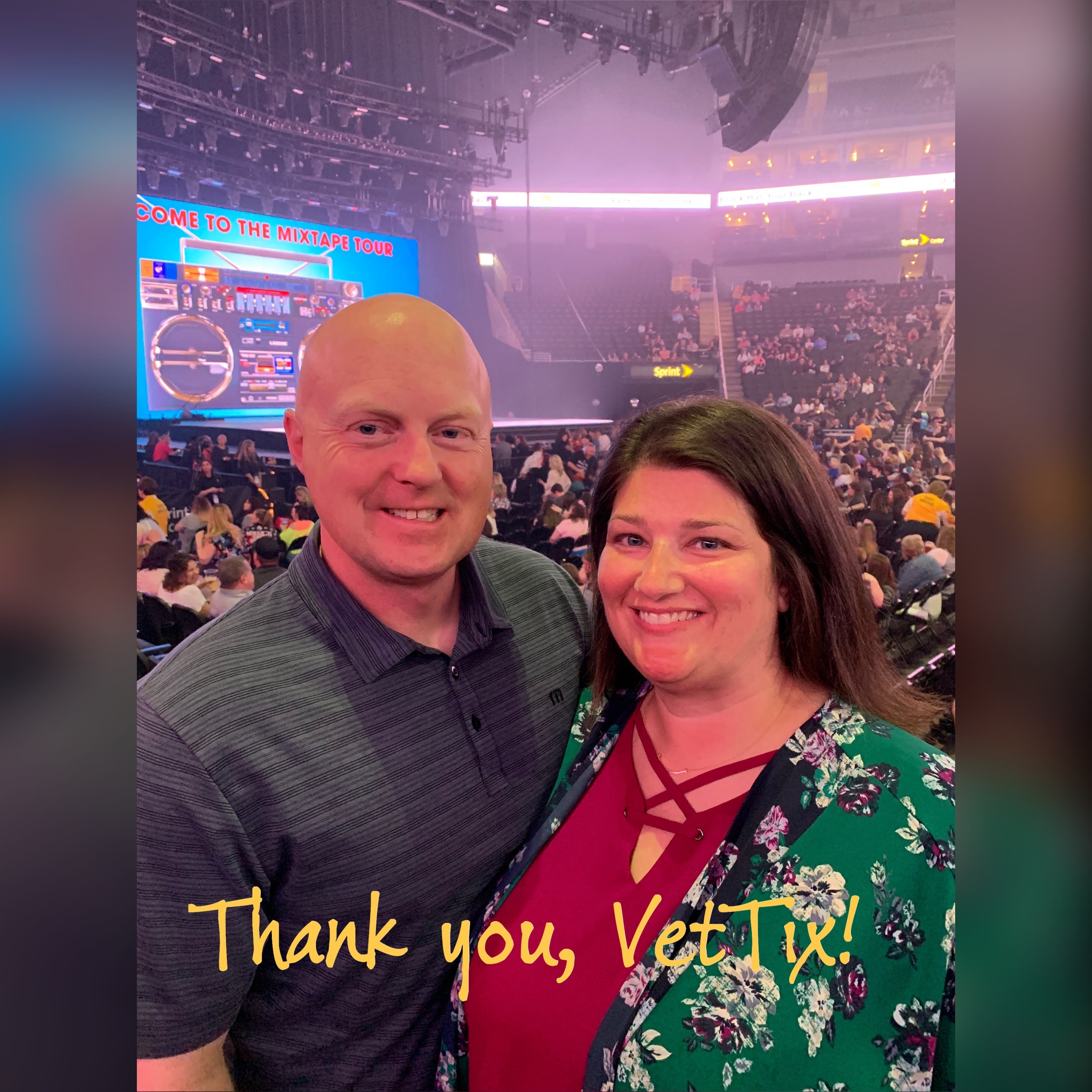 Thank you so much for the tickets to the mixtape tour! My wife and her sister thoroughly enjoyed the concert! Thank you for allowing me to provide this for her. She was my rock during deployments and even though I'm out of the service, she still worries when there's an unknown knock at the door...Military spouses shoulder a great burden for us. I'm very thankful for VetTix and the individual donors!