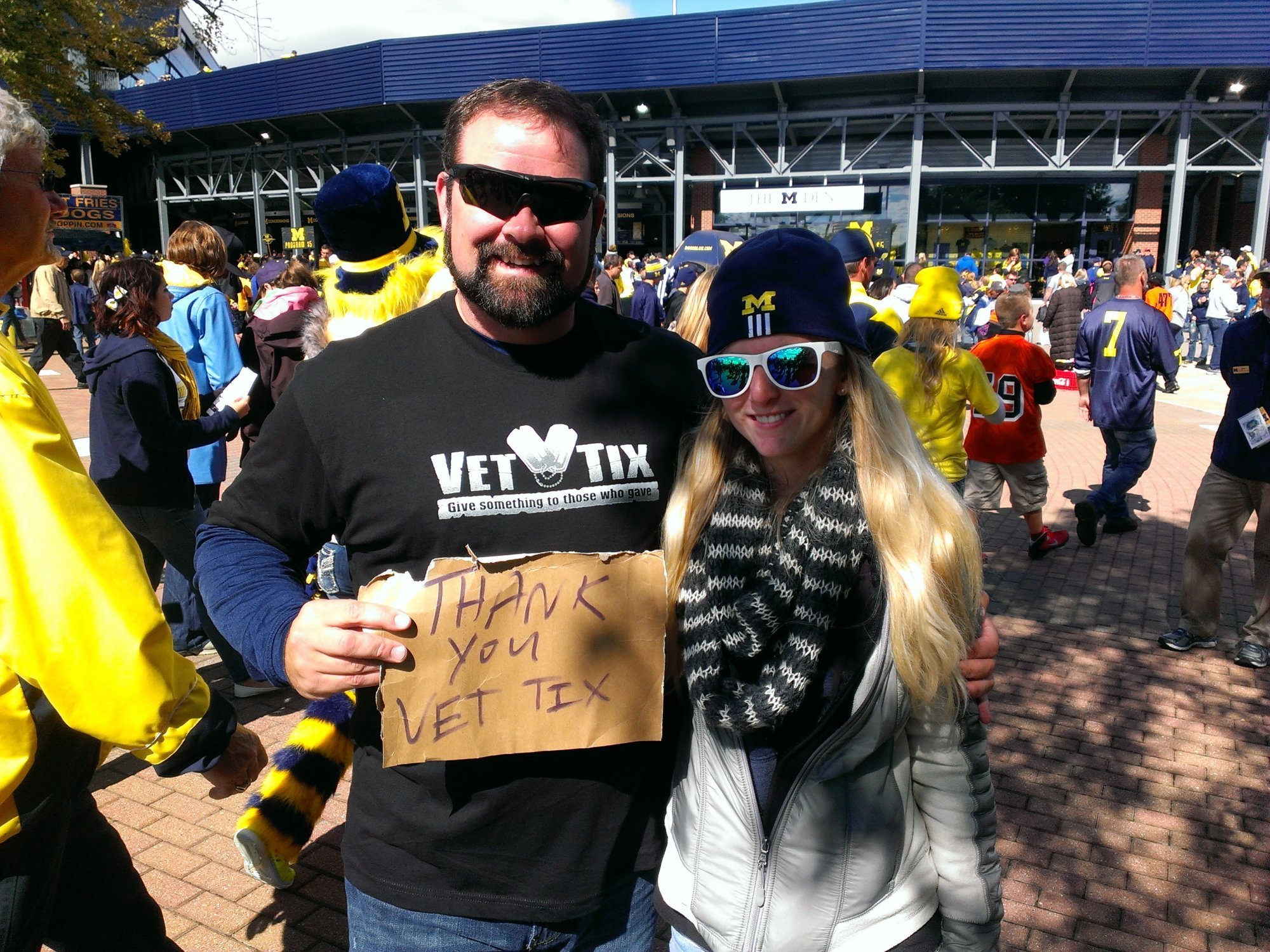 Thank you so much University of Michigan! Go Wolverines! What a great event, stadium, and fans! So easy to get in and out of the stadium too. I met a few vets there that had also obtained their tickets through vettix.org and were equally grateful for Michigan's generosity. What a kind and very much appreciated gesture. University of Michigan ROCKS!