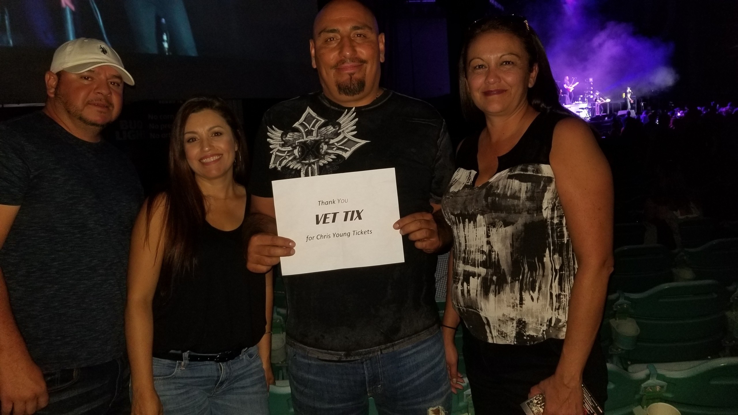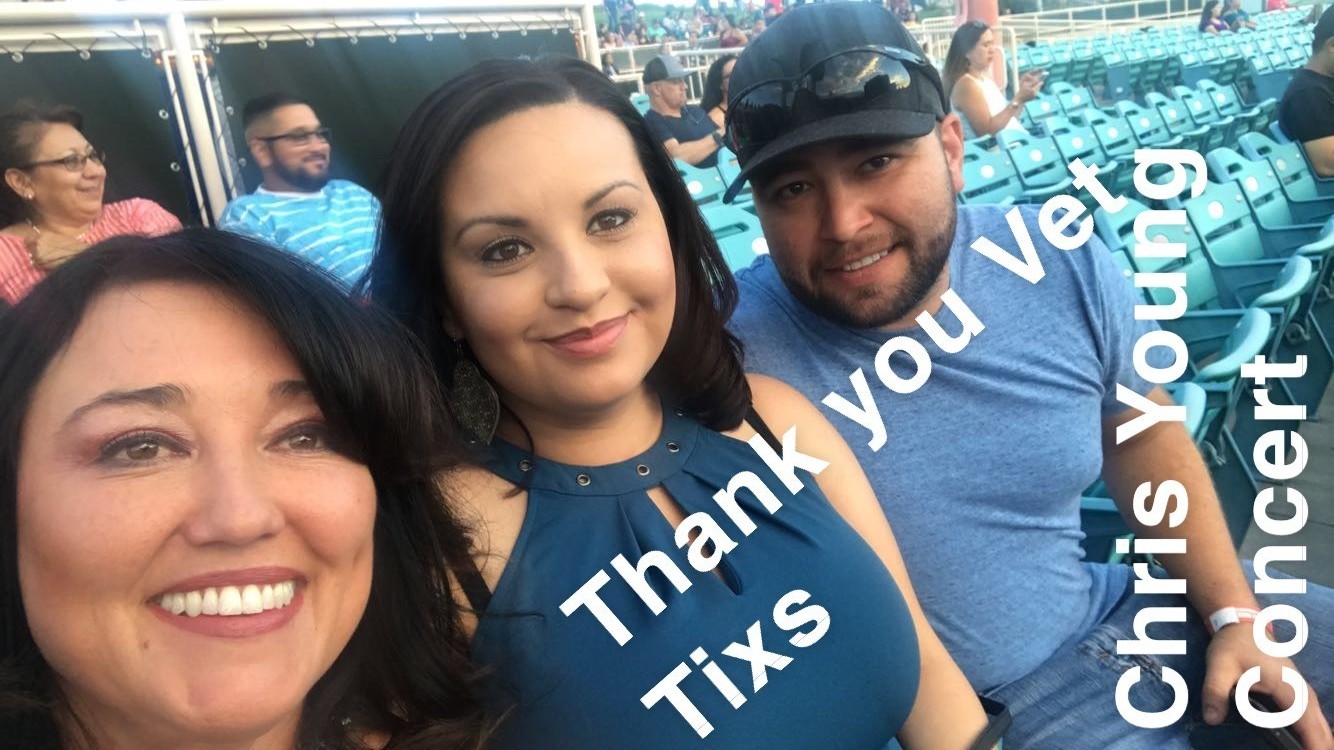 Thank you Vet Tixs! We had a great time at the Chris Young Comcert. We greatly appreciate this opportunity to do things through Vet Tixs and thankful to those who donate.