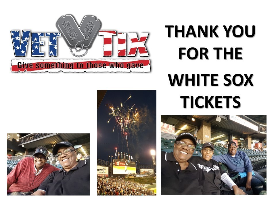 I would like to thank the Chicago White Sox - MLB for donating these tickets via VetTix. We had a great evening at the ballpark and I also had the privilege of meeting my fellow brothers and sisters in arms there. It was a great game and greater experience plus the Sox won 😀... Thank you, Lowell