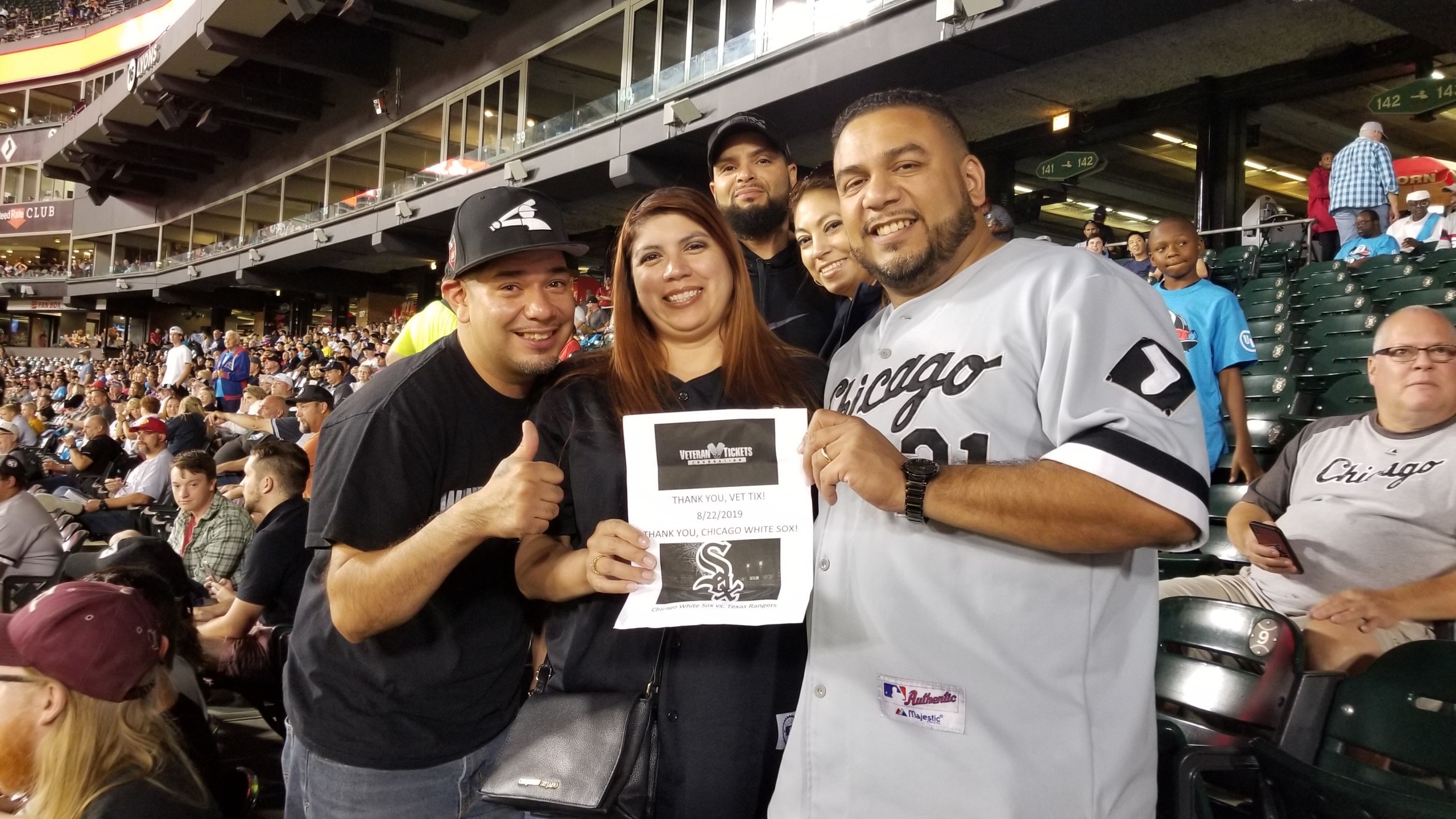Thank you, Chicago White Sox - MLB, for the tickets. Four of us enjoyed the 6 - 1 victory over the Texas Rangers. We celebrated the home runs with High Fives! Our friend enjoyed his birthday at the ballgame. We appreciate your support of the military.