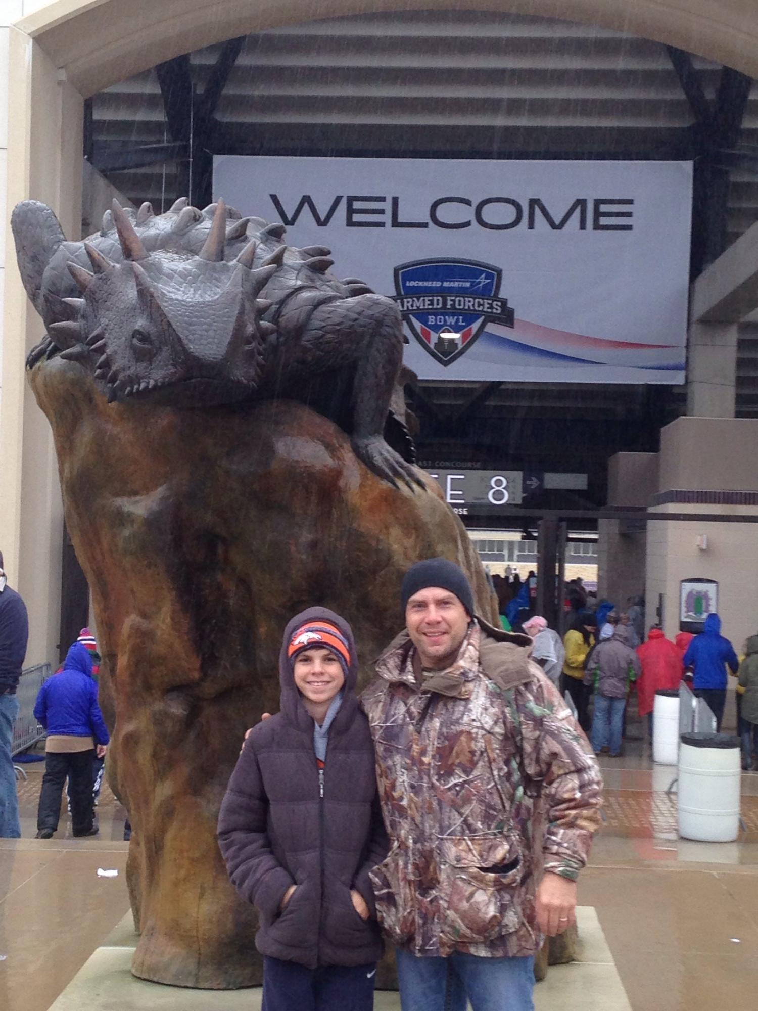 I want to thank you so much for donating tickets to the Armed Forces Bowl. In doing so you made it possible for me to take my son to his first ever NCAA football game. We may have froze but we made some awesome memories and can not wait to go again next season. Thank you so much again.