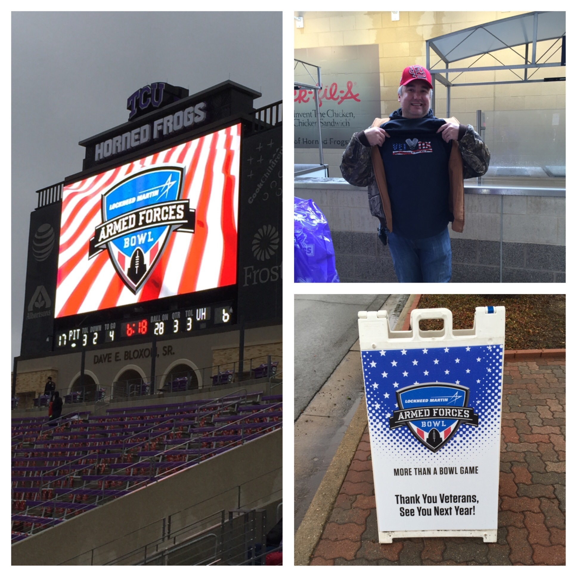 Thank you Vet Tix, Lockheed Martin Armed Forces Bowl and Heart of Dallas Bowl for providing the tickets to the Armed Forces Bowl. We had a great time watching Houston win in one of the greatest comebacks in bowl history!!
