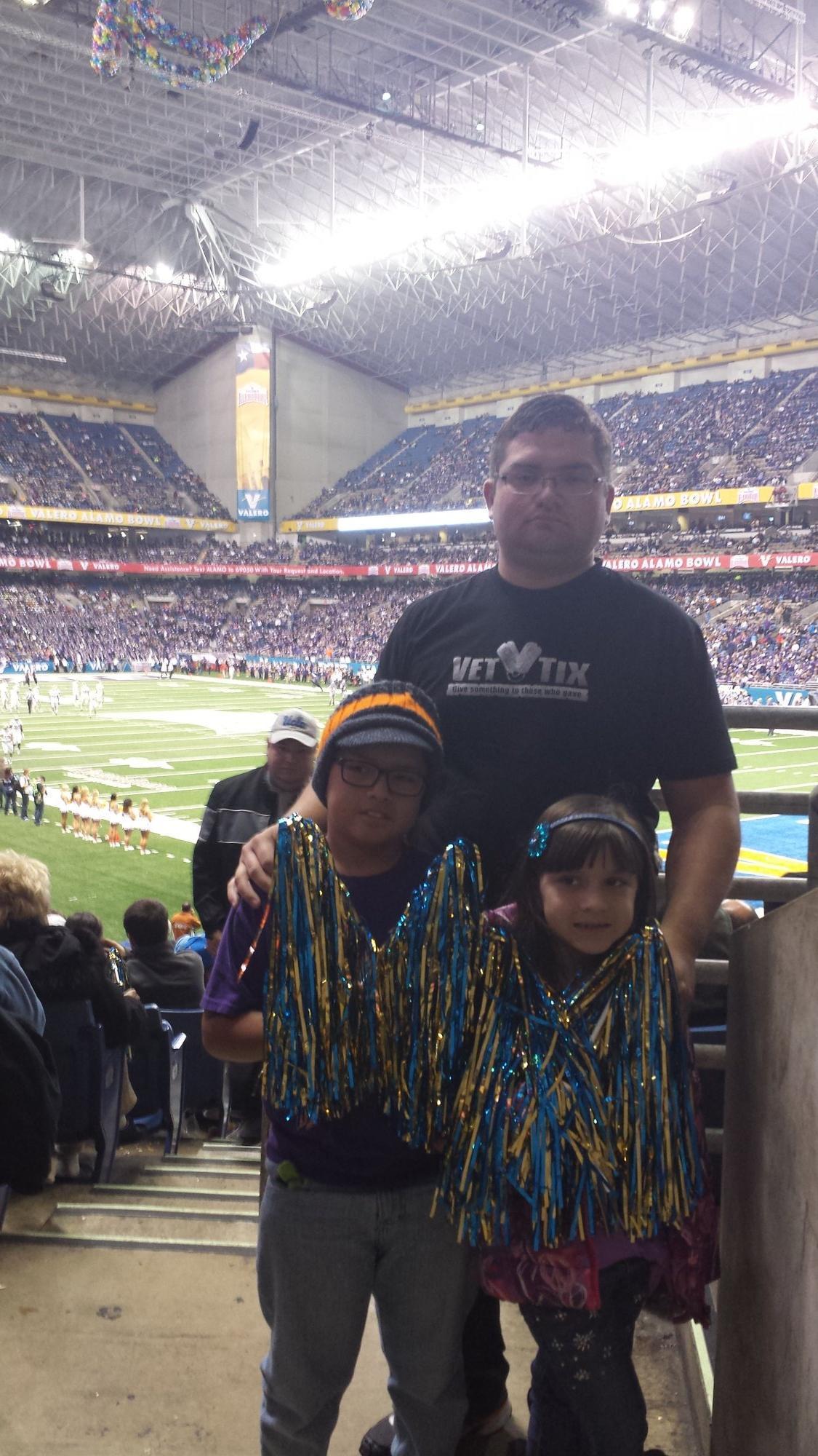 Awesome game ! Thank you so much for the tickets. Took all my kids and our team won !!! I tell all my vet friends to sign up for this unbelievable service. Thank you to The Alamo Bowl people for their generous donation!