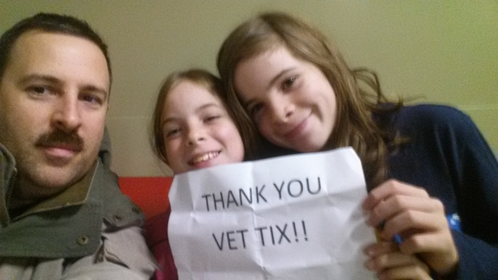 Thank you Vet Tix! My eldest 2 children and I had an awesome time. Thank you for the support of your wonderful donors.